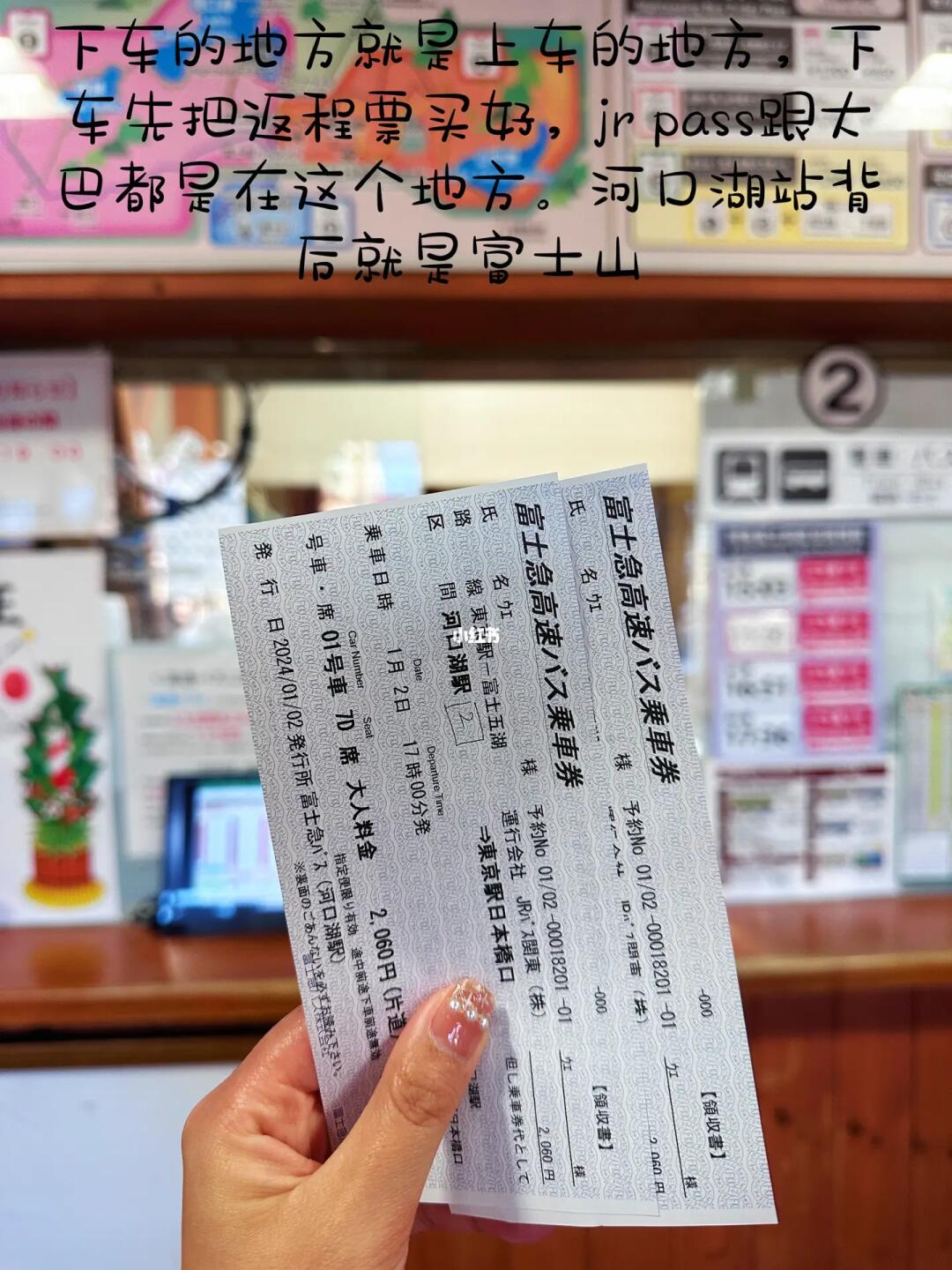 去程做的jr pass大约2h,到了下车可以先买返程票,大巴、JR都在这个地方买票。回程买不到新宿,可以买河口湖——东京站,巴士站点多。