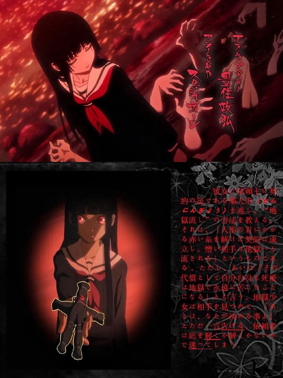 🌐 该动漫讲述了都市传说中的“地狱通信”成真, 午夜零时访问网站发送消息,就会有地狱少女(女主)出现,将怨恨之人打入地狱,不过“地狱通信”到底是善是恶呢…