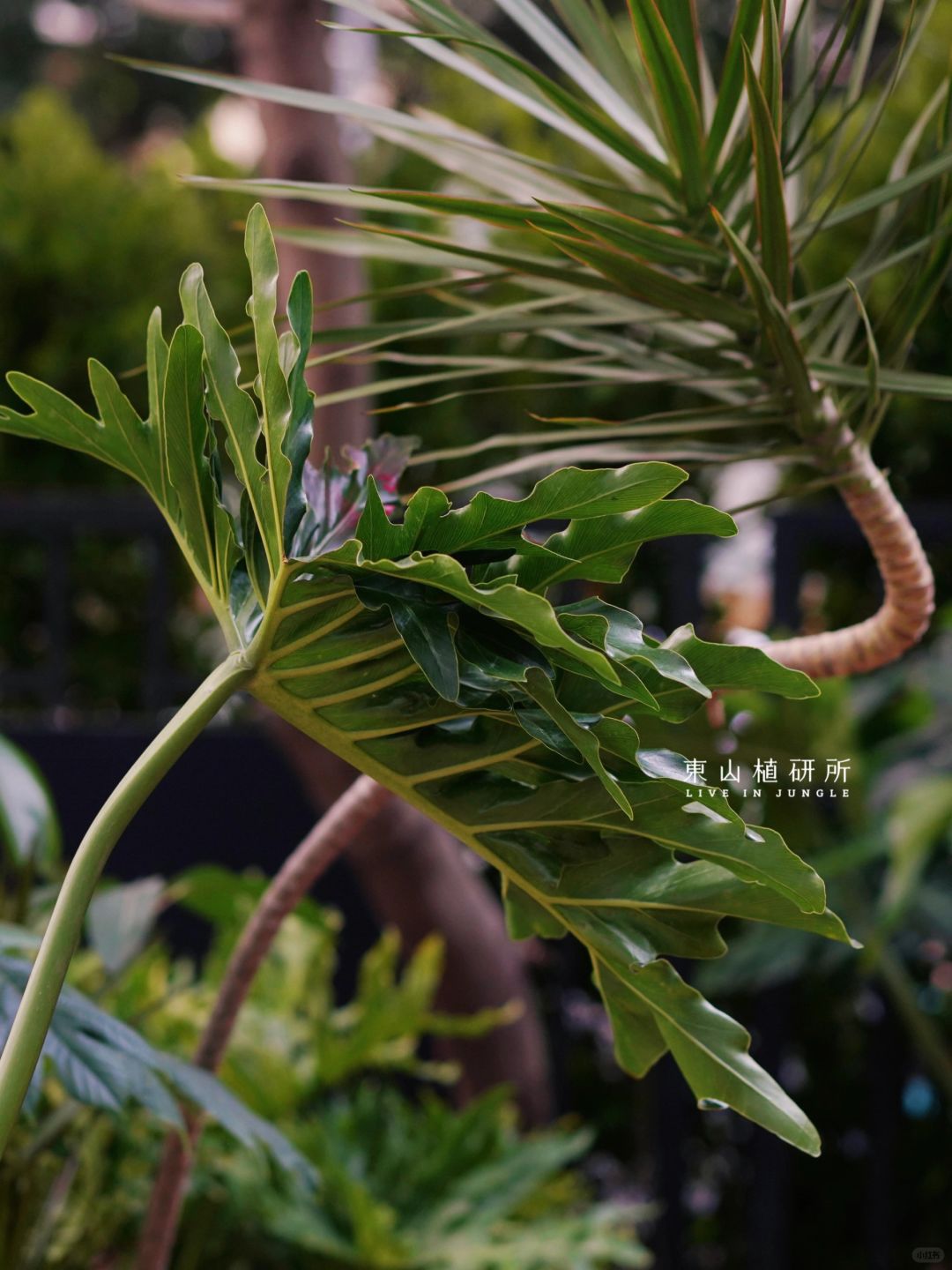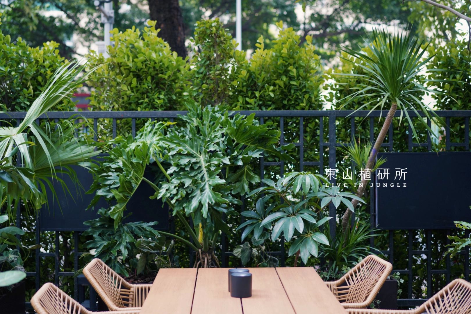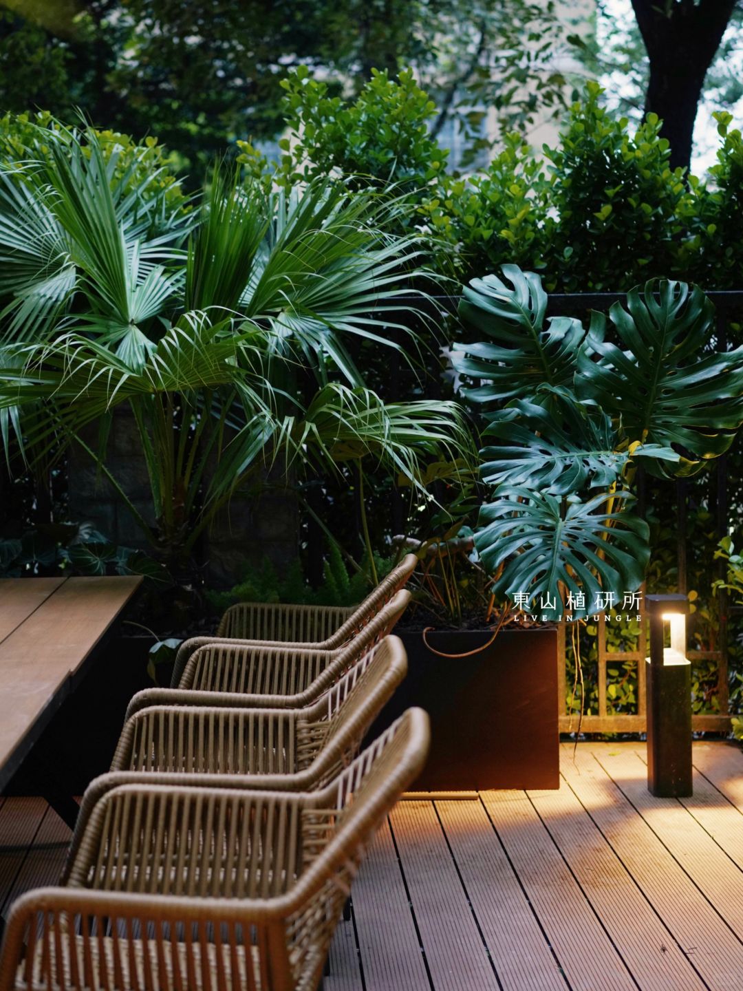 透过相机与自然对话 蒲葵和龙鳞春羽叶片交错 舒展的叶子 清晰的脉络 热带绿植让人置身于大自然的怀抱 午后阳光透过树叶洒在木桌和藤椅上 整个场景充满温暖的氛围 微风拂过 叶子轻轻摇曳 坐在户外感受植物营造的宁静 慵懒 舒适 偷得浮生半日闲 场地:德园 · 私人会所 设计:东山植研所 ——————