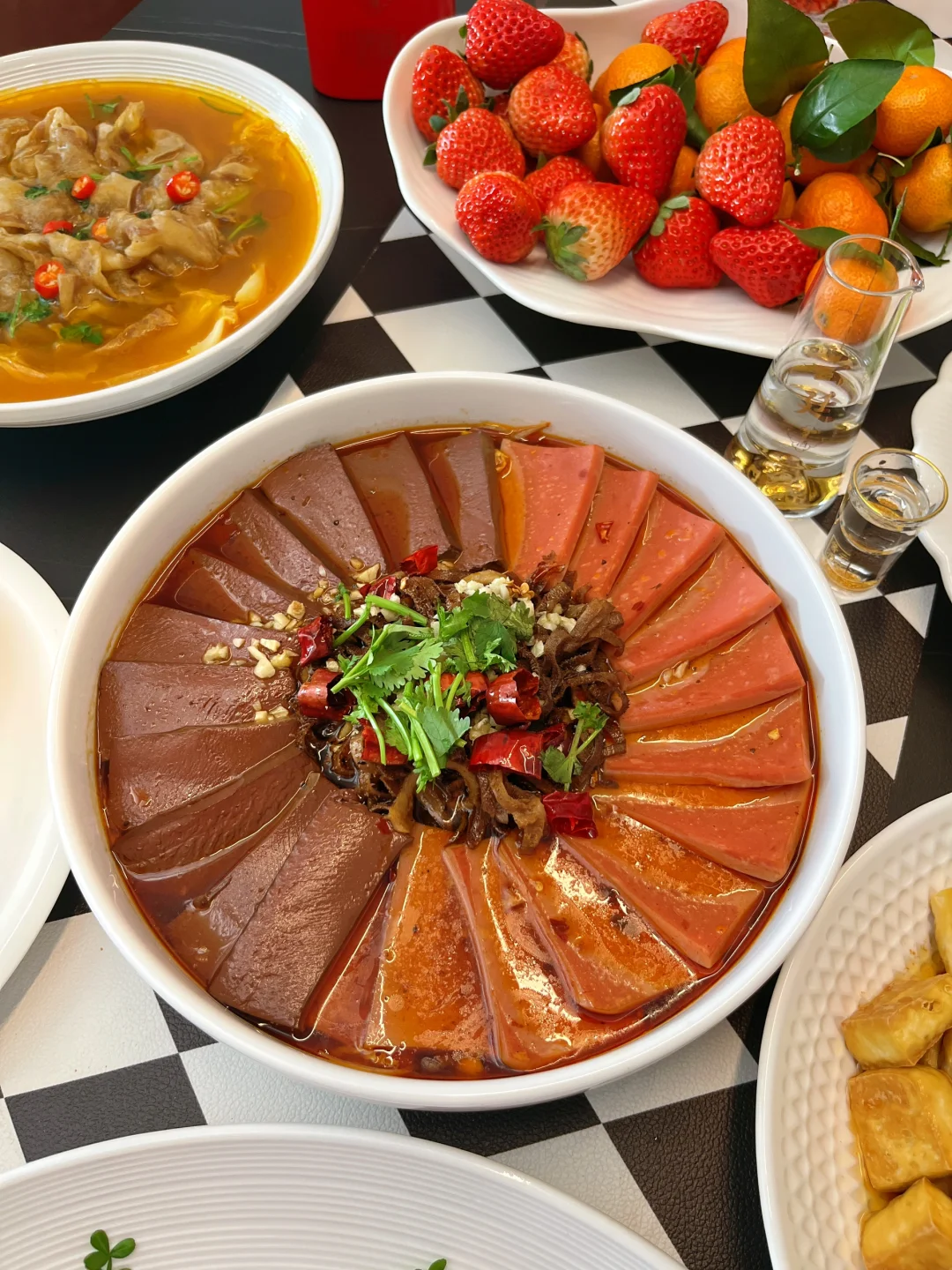家宴是最招待朋友的最高礼遇,有一种交情叫来我家吃饭…… 【今日家宴菜单】 [福R]毛血旺 [福R]金汤肥牛 [福R]麻婆豆腐 [福R]四喜丸子 [福R]金玉满堂 [福R]火龙果山药糕 [福R]梅渍小番茄 [种草R]大家一起围坐一桌享受美食,就是最好的过年方式~ 快到春节啦,叫上亲朋好友来家里小聚吃个年饭,一大桌子菜不得小酌几杯~拿出来新买的云廷酱酒,直上青云喜庆的龙年限定红色礼盒一上桌就倍有面儿,家人说过年送礼也合适~真正的12987大曲坤沙酱酒好入口,不呛鼻也不上头,倒一杯细细小品,口感柔顺,满口生香~ [种草R]一杯酒,一桌美食,一桌朋友,在这新年交替的时刻让我们跟这这忙碌的一年做惬意的告别,举起酒杯祝福溢满心间,来日方长,让云廷酱酒来见证我们新一年的幸福时刻~
