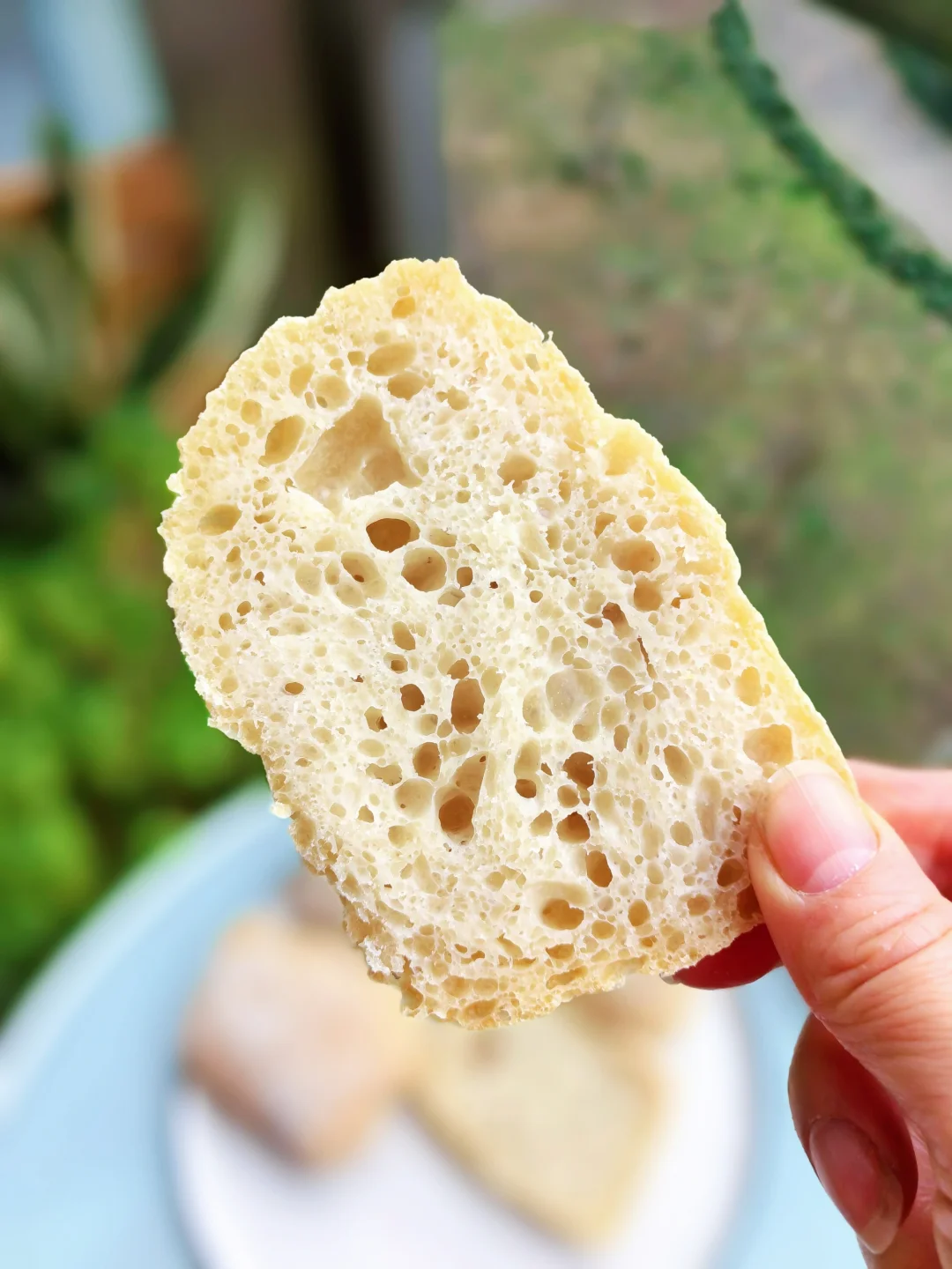同样,用面包机可以大大节省面团的制作时间,仅用3个多小时就可以完成,看一下成品,和我用了一天多时间厨师机制作的相比,气孔稍小,但口感差不多,关键是省了太多时间,性价比高。如果追求完美大气泡的,只要把面团放入冰箱低温发酵一个晚上就行。