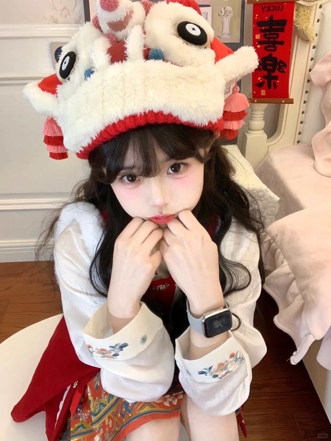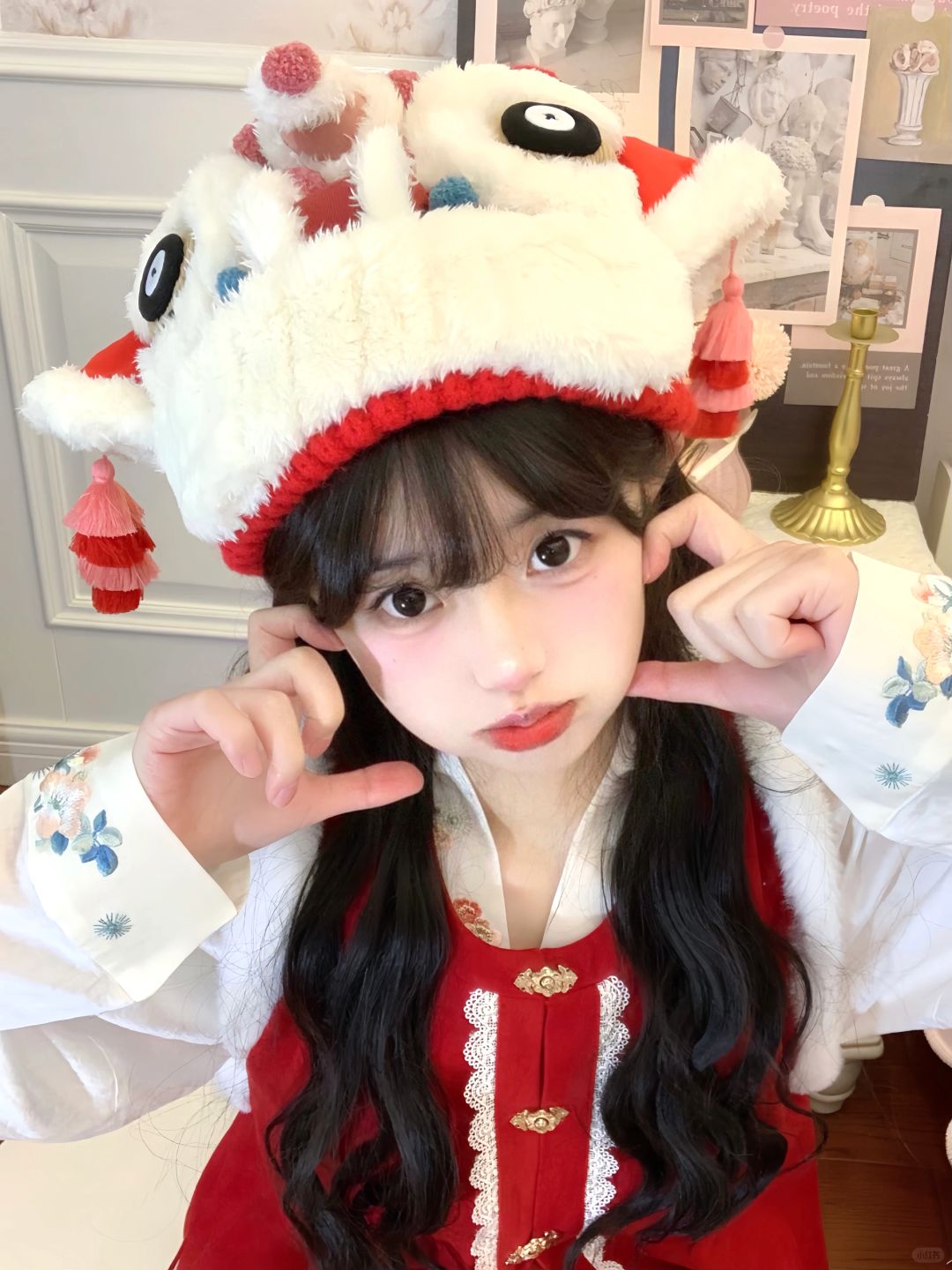 噔噔噔 小醒狮上线‼️ 这顶帽子太有年味啦! 据说红色代表了“武财神”🧨 整个造型还采用了少数民族非遗绣法 手工制作 戴在头上吉祥又喜庆🧧 过年收红包就靠它啦❕