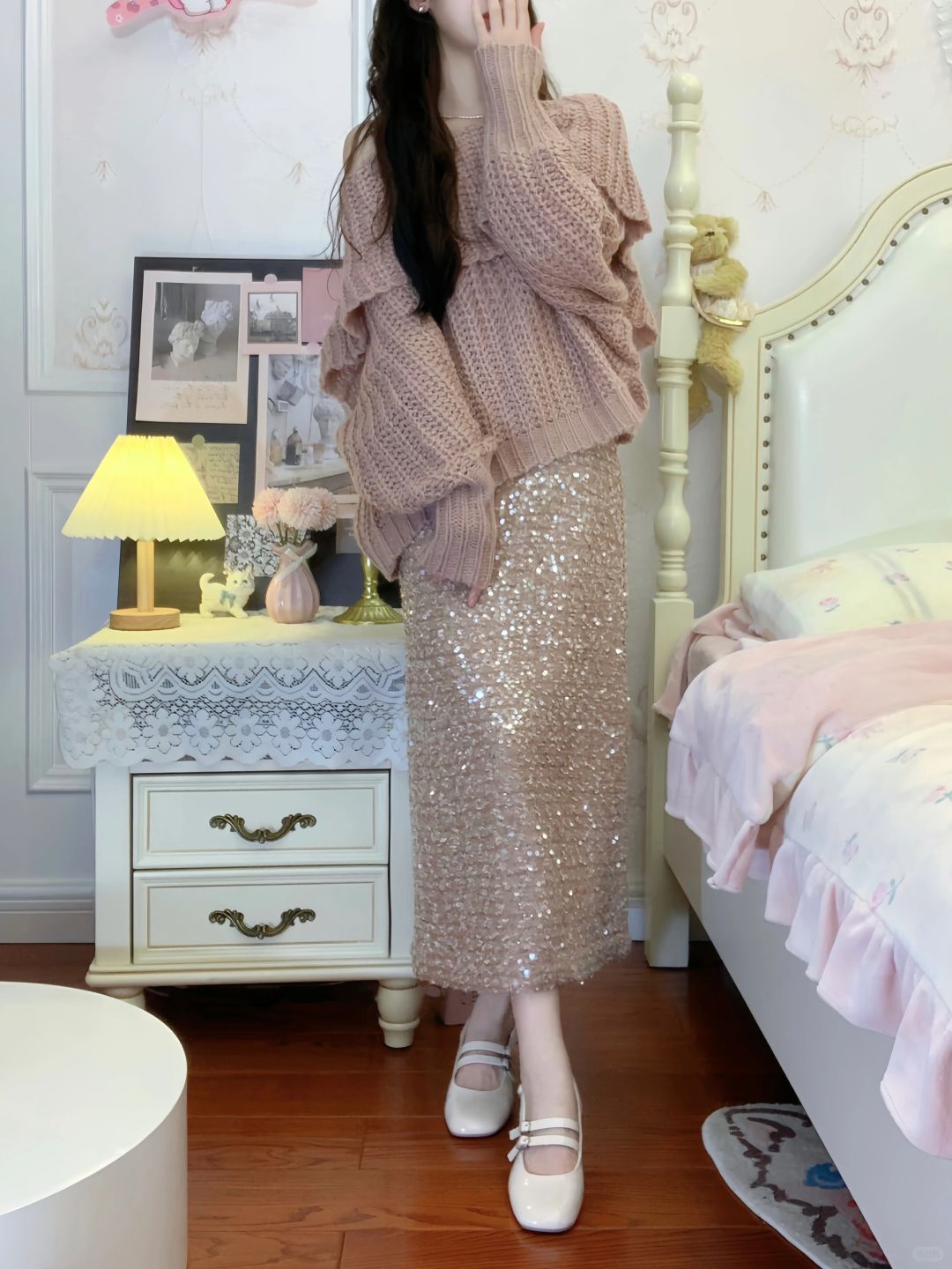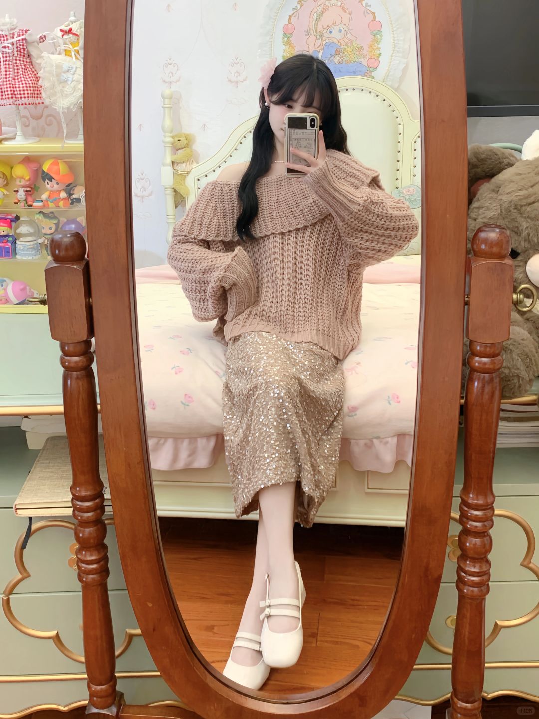 🕊️第一眼就很温柔的毛衣亮片裙~