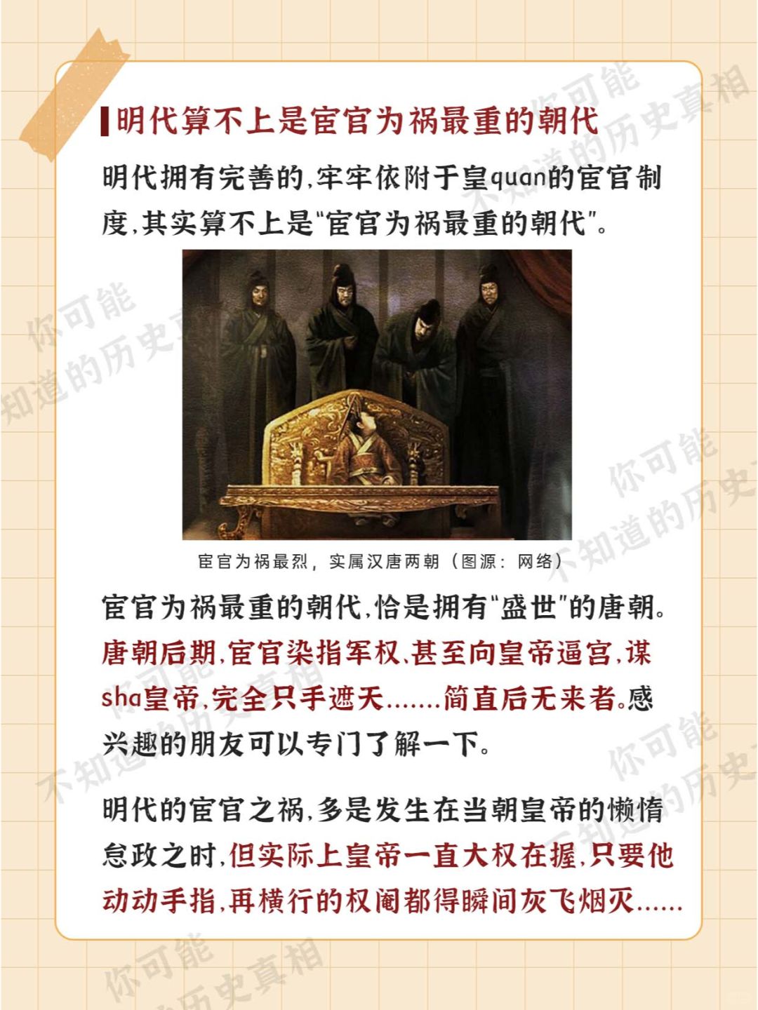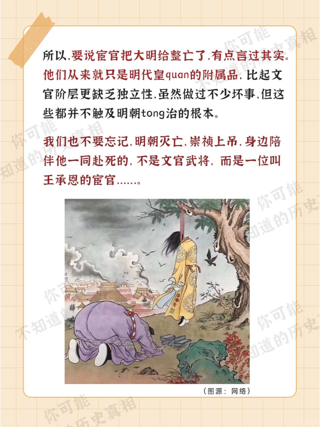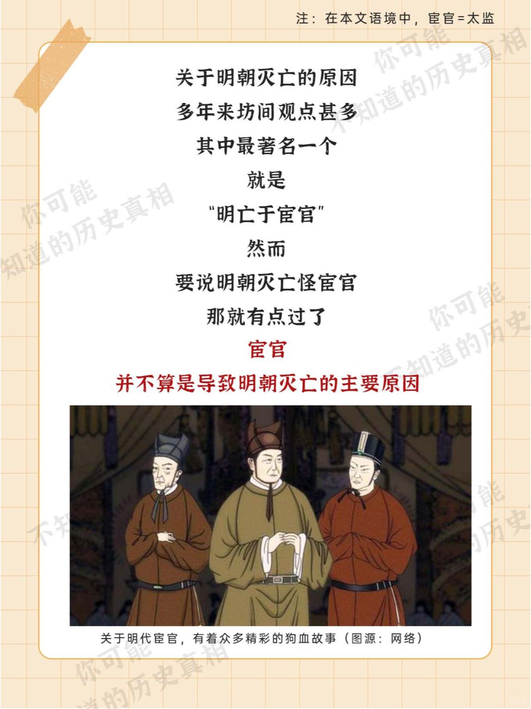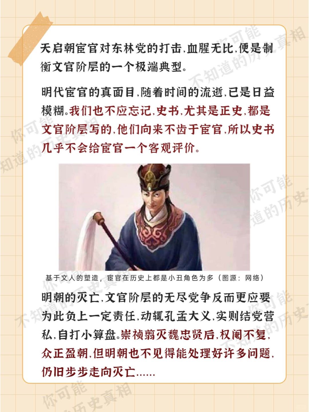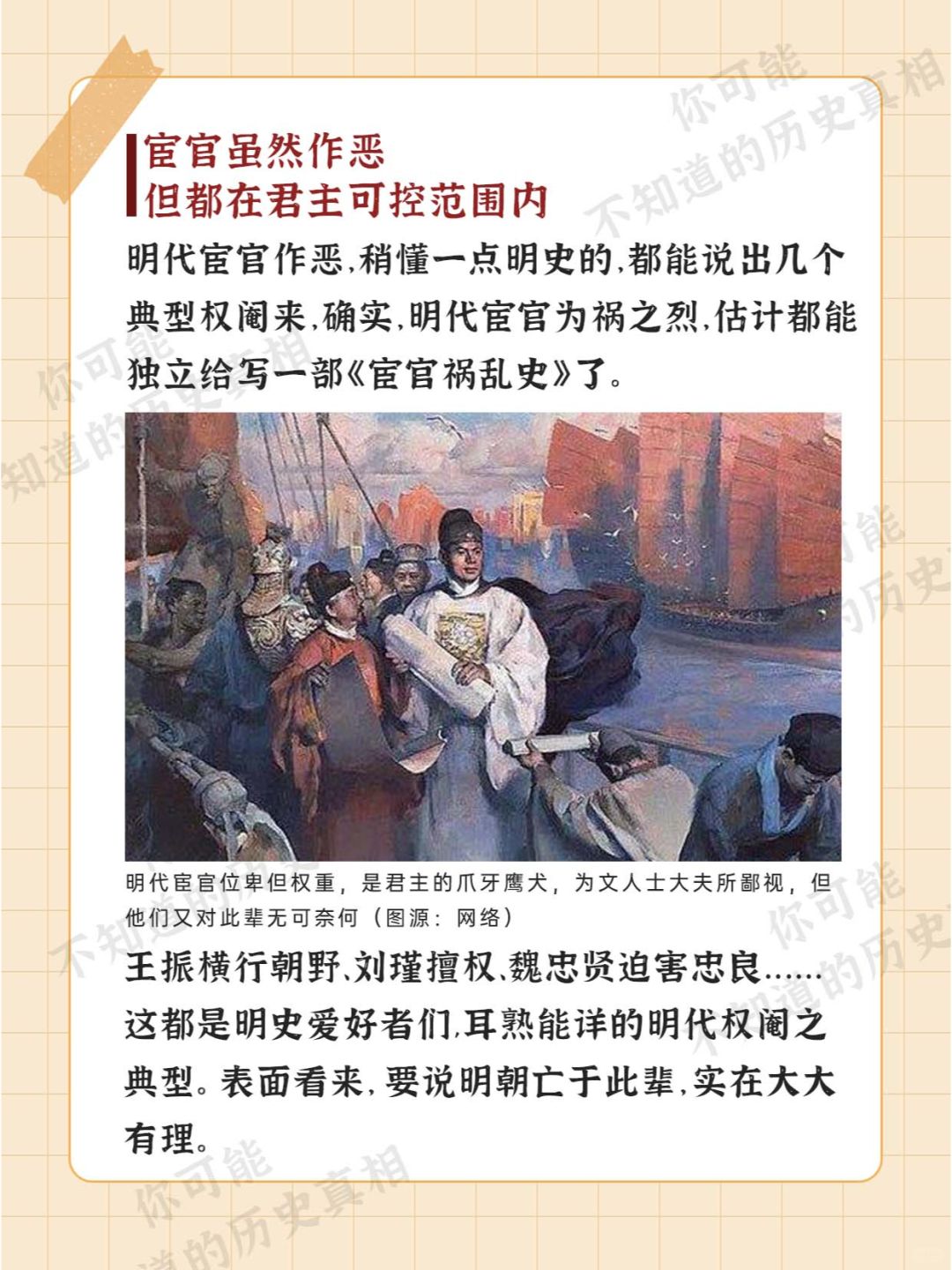 [微笑R][微笑R][微笑R] 明朝的灭亡 原因甚多 其中被坊间传播较多的 要数是 [石化R][石化R][石化R] “宦官专权导致明朝灭亡” 那么 [哇R][哇R][哇R] 明朝的宦官们 真的要为大明的灭亡 负责吗?? [皱眉R][皱眉R][皱眉R]