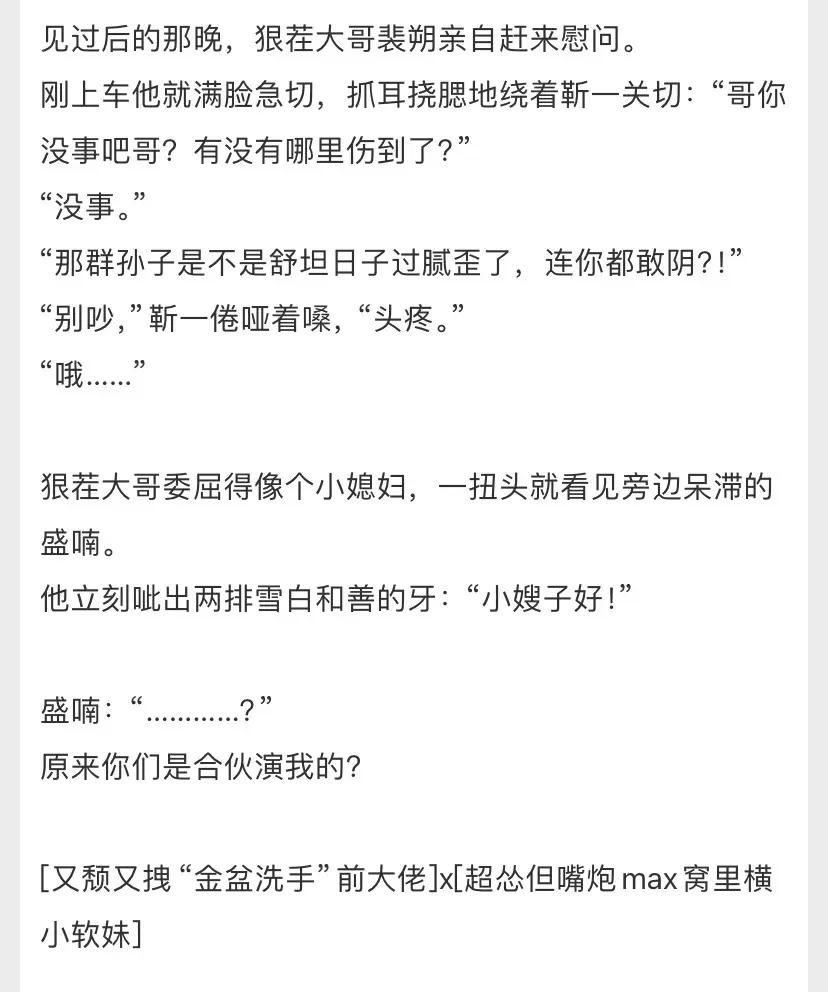 啊啊啊啊强烈推荐这本《招月》先婚后爱/追妻火葬场 京圈大佬x女学生!!男女主协议结婚,婚后女主追男主,男主步步沦陷却不承认觉得是各取所需,女主知道后果断离婚,男主悔悟追妻。好喜欢女主,性格果断不拖泥带水不内耗,后面知道男主因为家庭原因才不相信感情,直接和男主把话摊开说,男主后面追妻也好温柔态度虔诚,强烈推荐!!快去看!冲冲冲!!