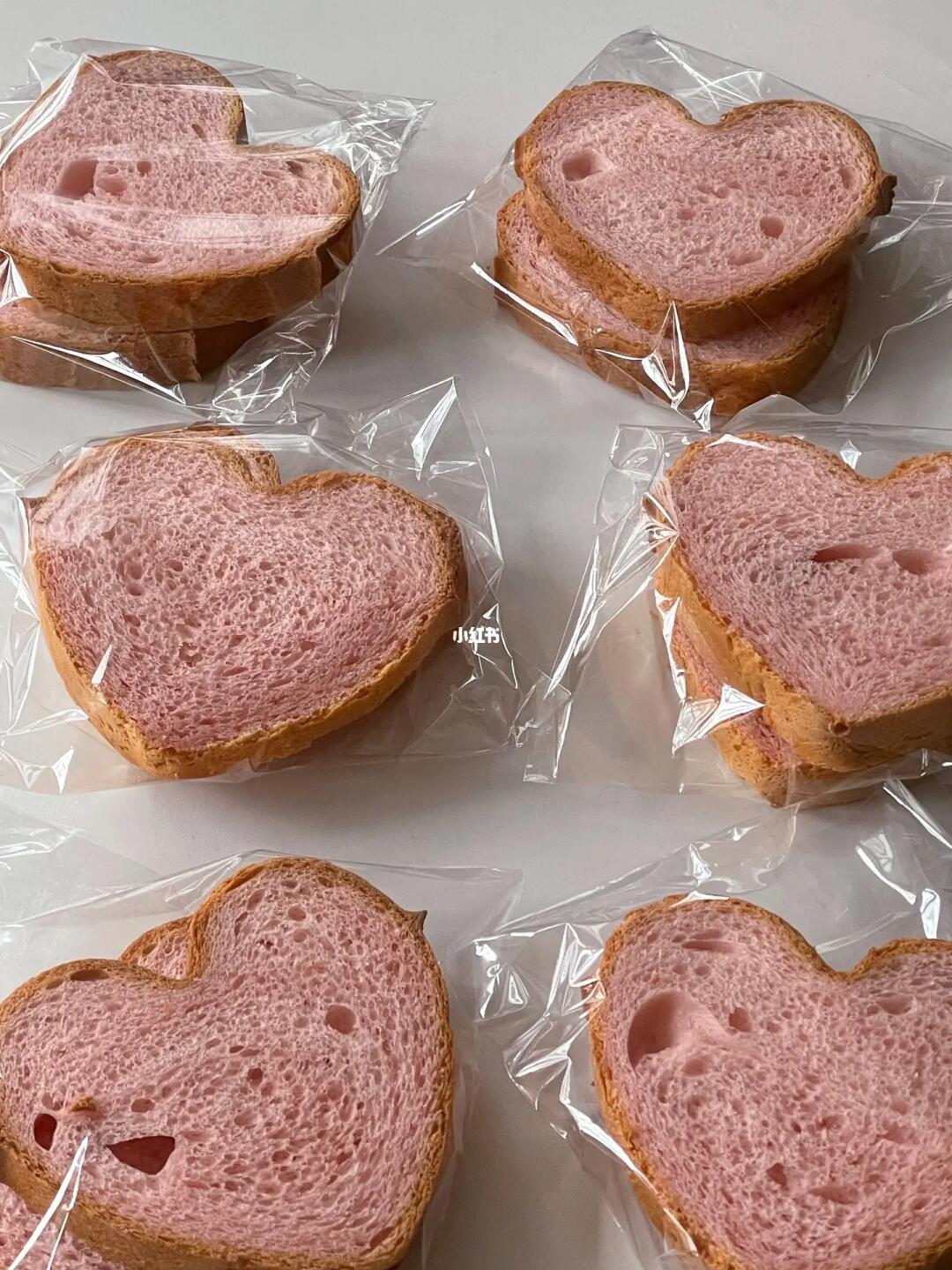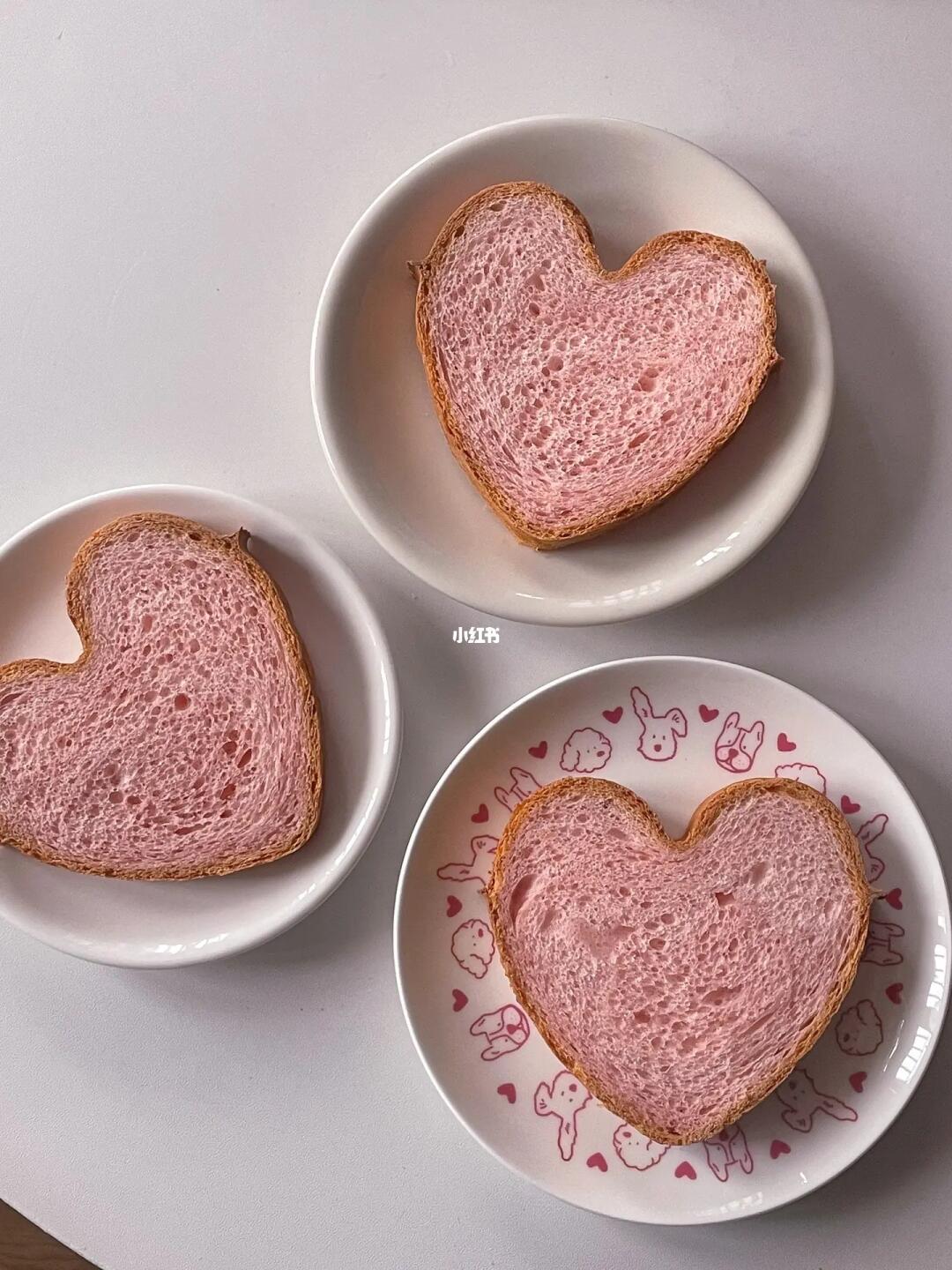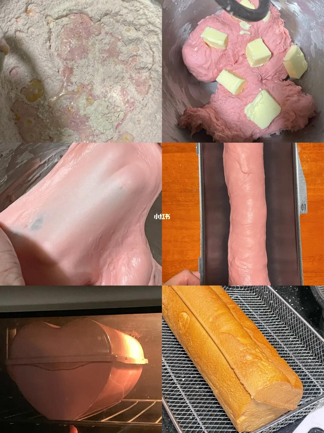 情人节在家做粉嫩又柔软的牛奶吐司 用的方子敲简单 省时省心省力 做出来的吐司外皮酥脆 内里柔软 新手也能成功! - 材料: 高筋面粉250g、耐高糖酵母3g、液体:鸡蛋1个+牛奶180g 、白糖30g、盐2g、黄油30g、仙人掌果粉适量 步骤: 1️⃣除黄油外其余材料倒入厨师机中,低速混合均后中低速将面团打出厚膜 2️⃣将黄油加入面团里,中低速将黄油融合到面团里,再高速将面团打出薄膜 3️⃣打好的面团松弛静置15分钟,松弛好的面团整成和模具差不多长度,然后再卷起来,放入模具中 4️⃣放入烤箱35-40度发酵90分钟,天气热就直接室温发酵,发酵时在面团上稍微用喷壶喷点水,然后将模具盖上 5️⃣发酵好的面团,放入烤箱中下层,上下管150度烘烤50分钟,可以不用提前预热,直接进烤箱,这样吐司在烤箱中还能膨发一小段时间 6️⃣烤好的吐司,震出热气,脱膜,晾凉后切片 - 方子参考小鱼慢游
