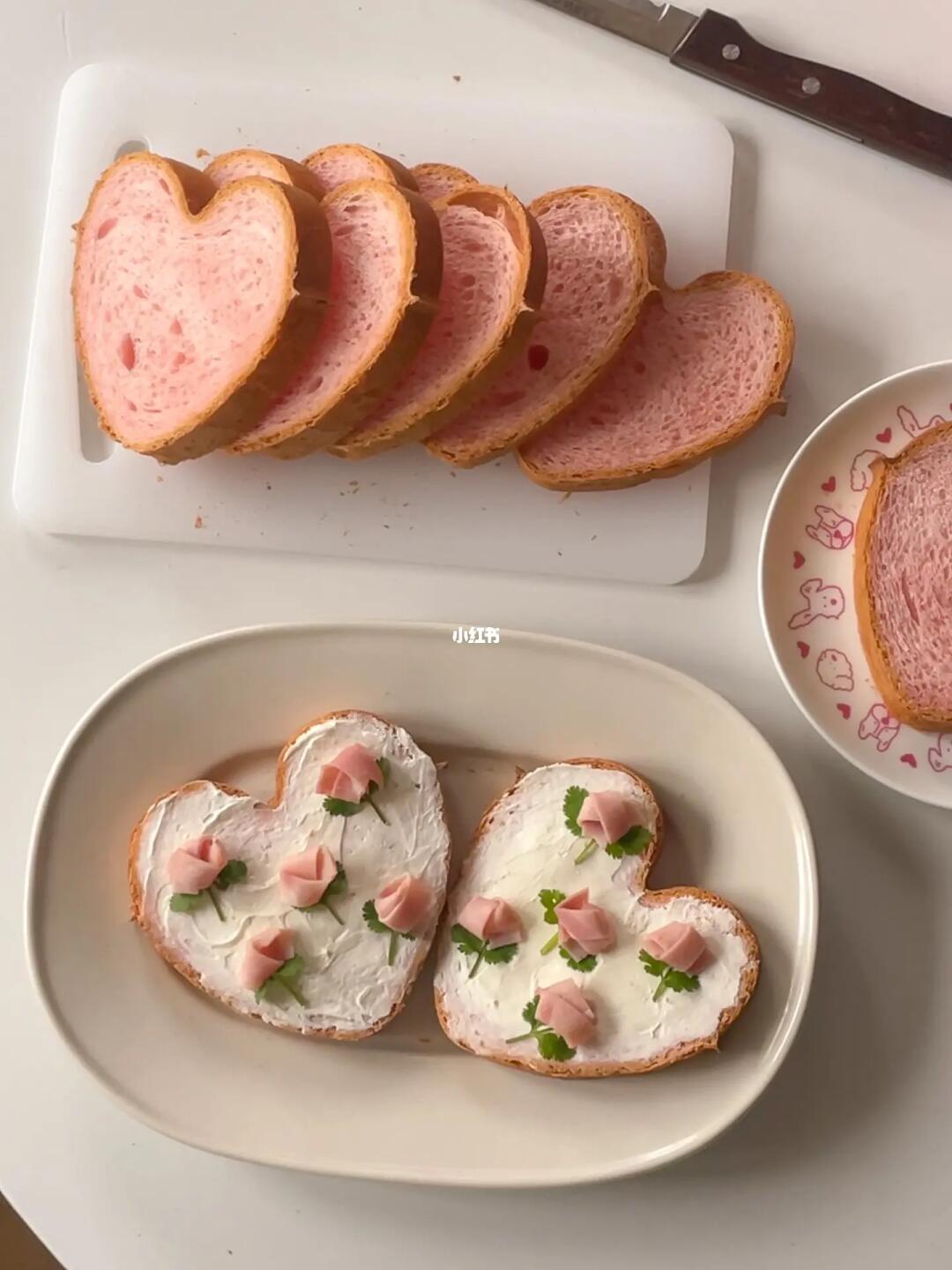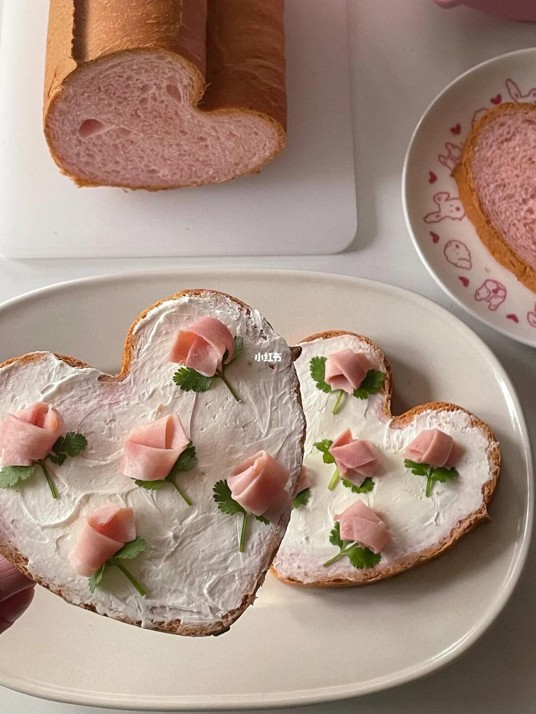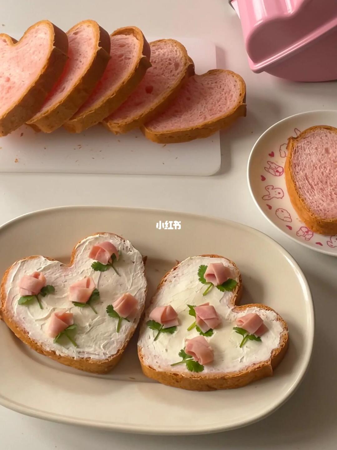 情人节在家做粉嫩又柔软的牛奶吐司 用的方子敲简单 省时省心省力 做出来的吐司外皮酥脆 内里柔软 新手也能成功! - 材料: 高筋面粉250g、耐高糖酵母3g、液体:鸡蛋1个+牛奶180g 、白糖30g、盐2g、黄油30g、仙人掌果粉适量 步骤: 1️⃣除黄油外其余材料倒入厨师机中,低速混合均后中低速将面团打出厚膜 2️⃣将黄油加入面团里,中低速将黄油融合到面团里,再高速将面团打出薄膜 3️⃣打好的面团松弛静置15分钟,松弛好的面团整成和模具差不多长度,然后再卷起来,放入模具中 4️⃣放入烤箱35-40度发酵90分钟,天气热就直接室温发酵,发酵时在面团上稍微用喷壶喷点水,然后将模具盖上 5️⃣发酵好的面团,放入烤箱中下层,上下管150度烘烤50分钟,可以不用提前预热,直接进烤箱,这样吐司在烤箱中还能膨发一小段时间 6️⃣烤好的吐司,震出热气,脱膜,晾凉后切片 - 方子参考小鱼慢游