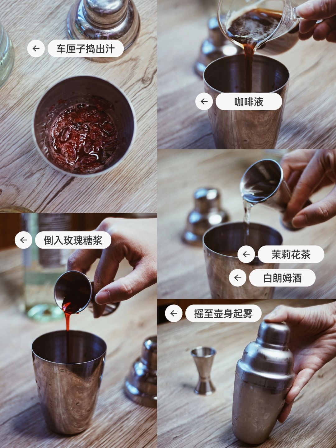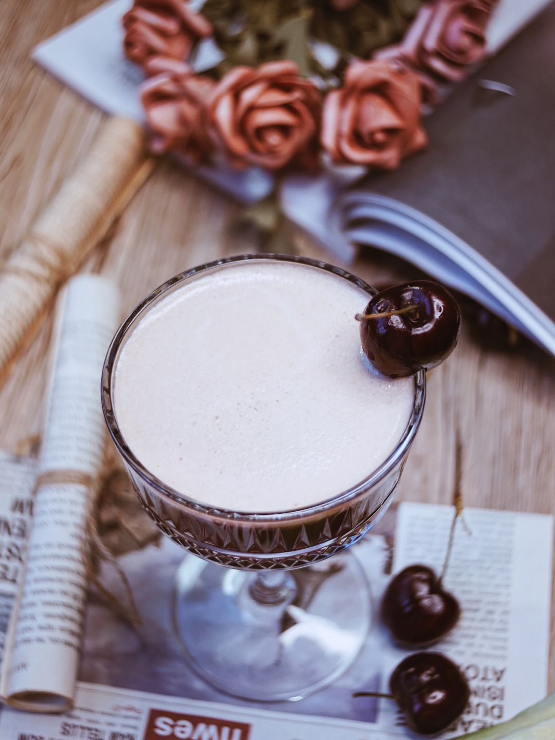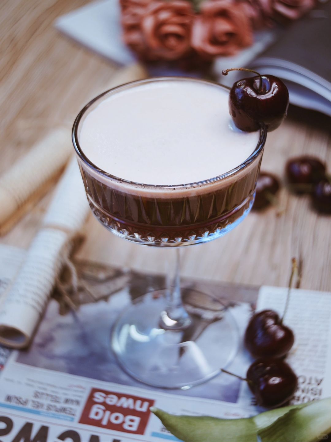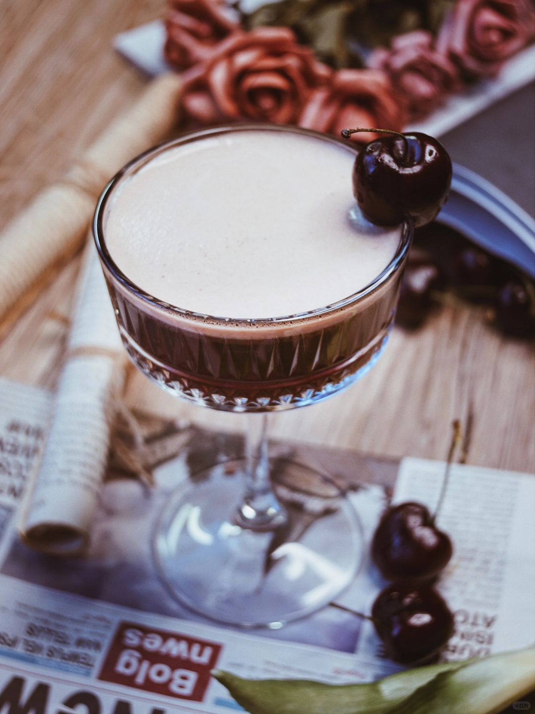 新年的第一篇 度过有点混乱的几天,调一杯果味咖啡,也是多重风味的鸡尾酒🍸庆祝回归正轨的生活 再次体会到维持稳定的生活节奏,是zui舒适的状态 至此以后,白昼渐长 · 🍸【用料:】 车厘子8颗、玫瑰糖浆15ml、朗姆酒60g、手冲咖啡80ml、茉莉绿茶80ml、冰块40g · 🍸【调饮步骤:】 ▪️车厘子去核,放入雪克壶里捣出汁 ▪️依次加入玫瑰糖浆、朗姆酒、冰块、手冲咖啡、茉莉绿茶 ▪️大力shake!摇至冰块融化,壶身起雾。倒入杯中 · 如果想要颜色偏红色,可以酌情减少咖啡液