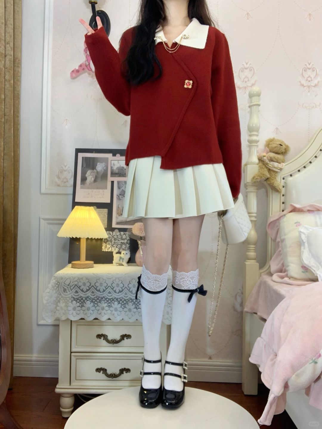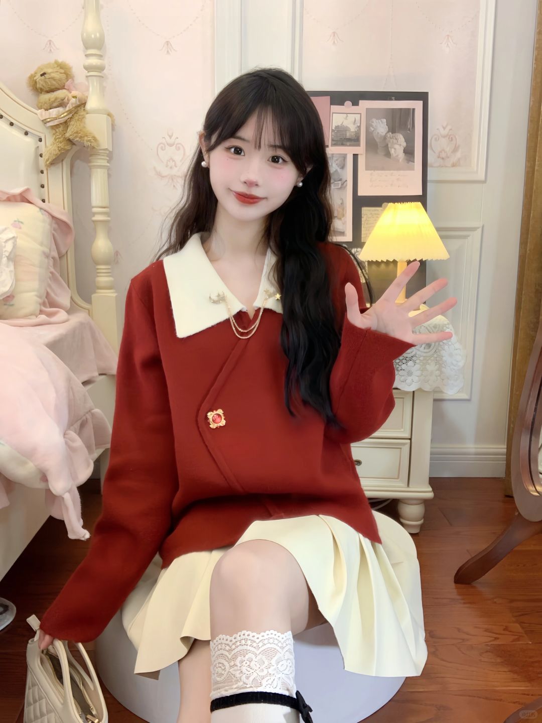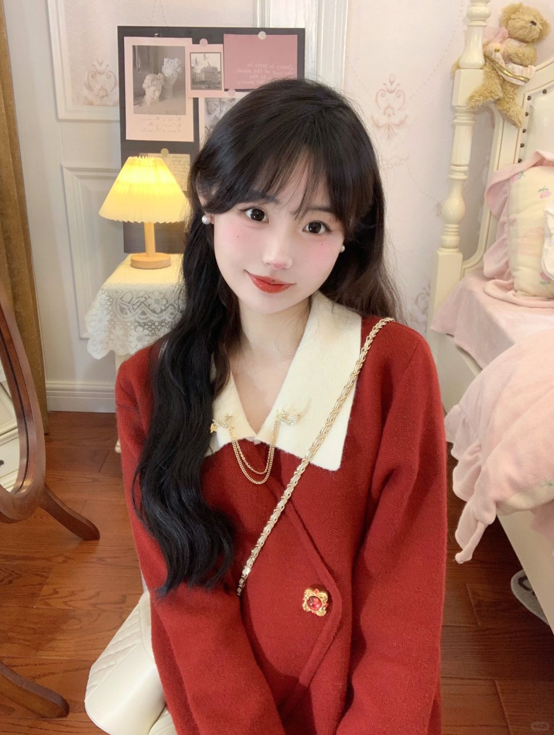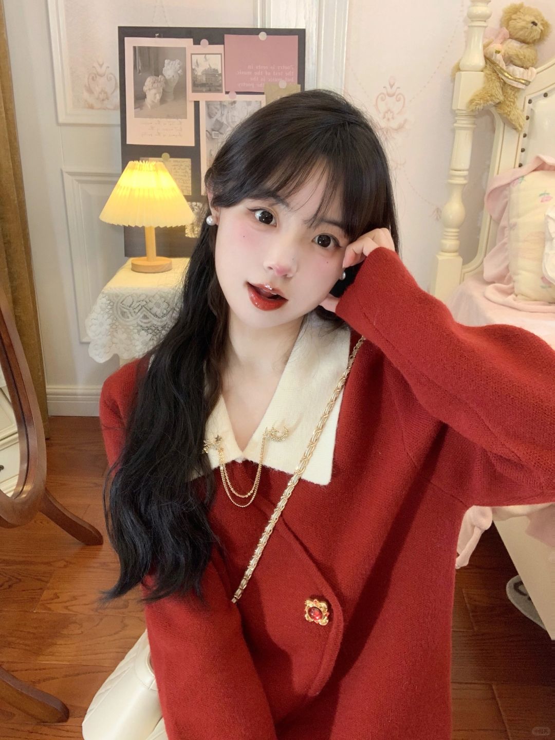 新中式毛衣太有气质啦 暗红色好显白呀🥀