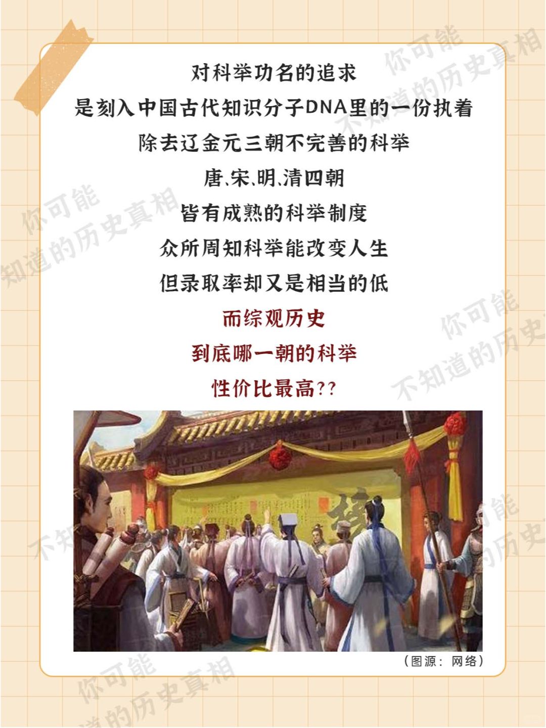 [微笑R][微笑R][微笑R] 自隋后的中国王朝 基本都有科举 [喝奶茶R][喝奶茶R][喝奶茶R] 而科举最完善者 非唐宋明清莫属 到底 在哪个朝代考科举 录取率更高? 更容易实现自己阶级跃升的愿望? [doge][doge][doge]