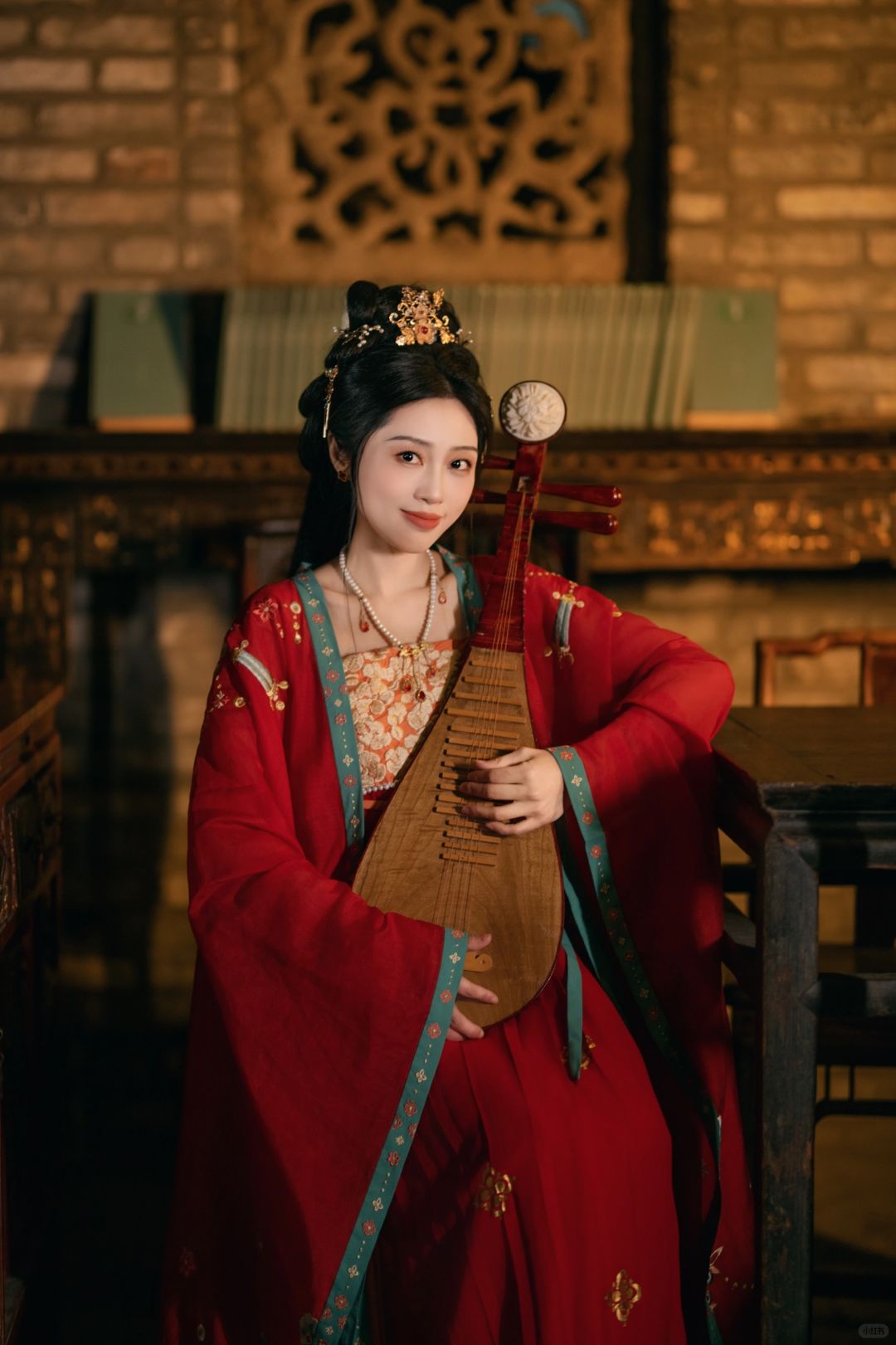 那我们就在咱们书院拍,服装选择红色的唐风,场景选择