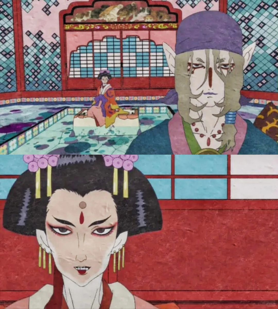 🐶本修勾说:本番包含了五个故事,分别是《座敷童子》《海坊主》《无脸怪》《鵺》《化猫》,每个故事都是以日本知名的怪谈为基础,加入了创作者们对原作的解读和自己的观点画风采用的是浮世绘的风格,色彩鲜艳,视觉效果华丽,细节丰富,非常赏心悦目。配乐与剧情和画风非常搭配,营造出一种幽静深远的氛围,让人感受到怪谈的诡异和美妙。非常值得一看!