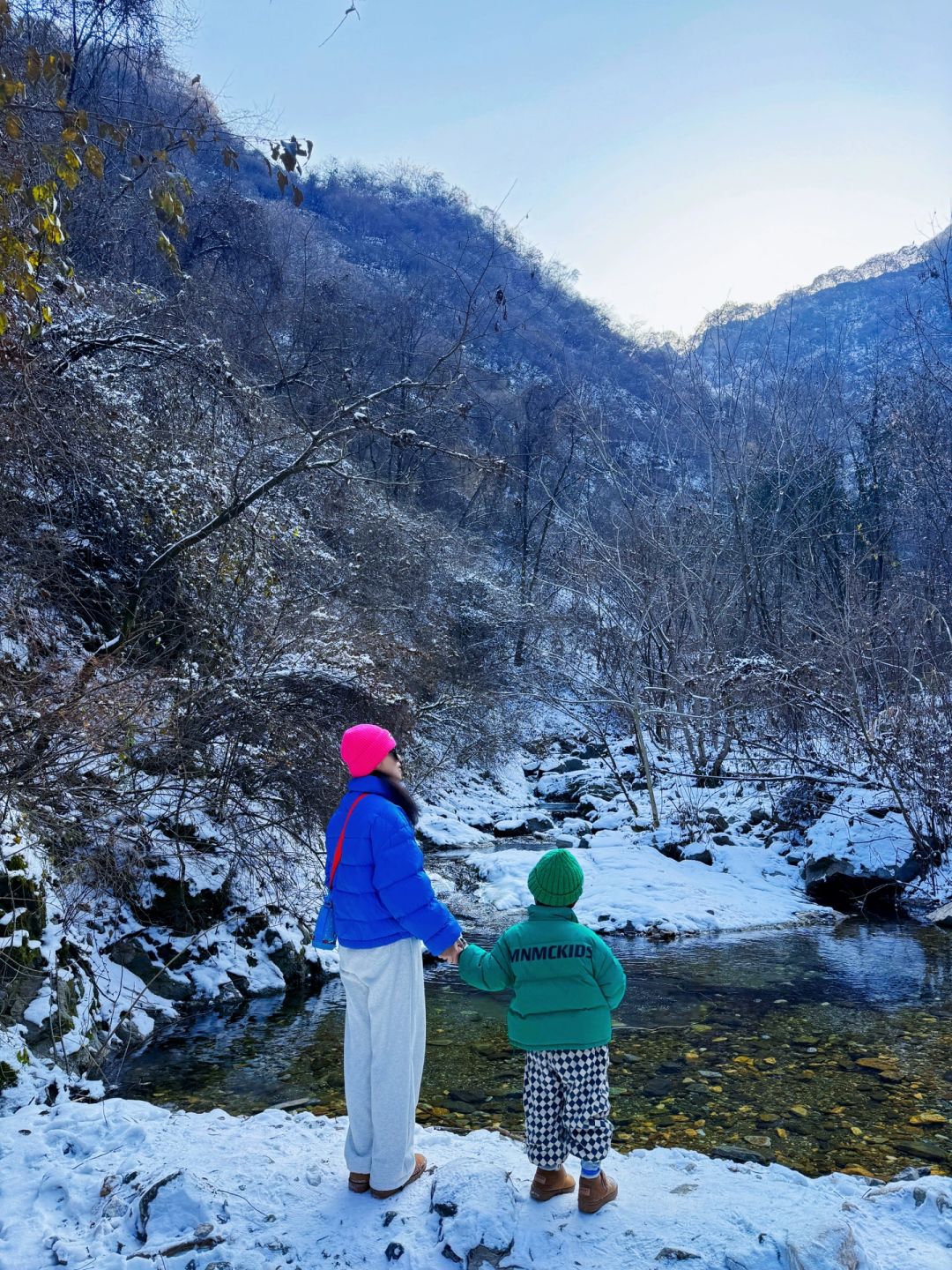 Hi,我是小Jason麻麻,一位热衷于户外溜娃的 90后麻麻,为什么说这条路线舒服呢?坡度平缓,几乎没有拔高,很适合小白和亲子徒步! 📍导航“谭峪口村”,车可以停在旁边的私人停车场🅿️,也可停路边!(路图放在图6啦‼️) 门票:不收💰 ✅这条路线主要以“石子路”为主,没有台阶,坡度平缓,路程较长!(山上有冰瀑布!!) ✅带娃上山3个小时+下山2小时,娃走不动了休息一会在出发! ✔️带吃的和水,路线较长~ ✔️山上有冰瀑布可观看~ ✔️有一大片河水可以玩,拍照也很漂亮~(图2)