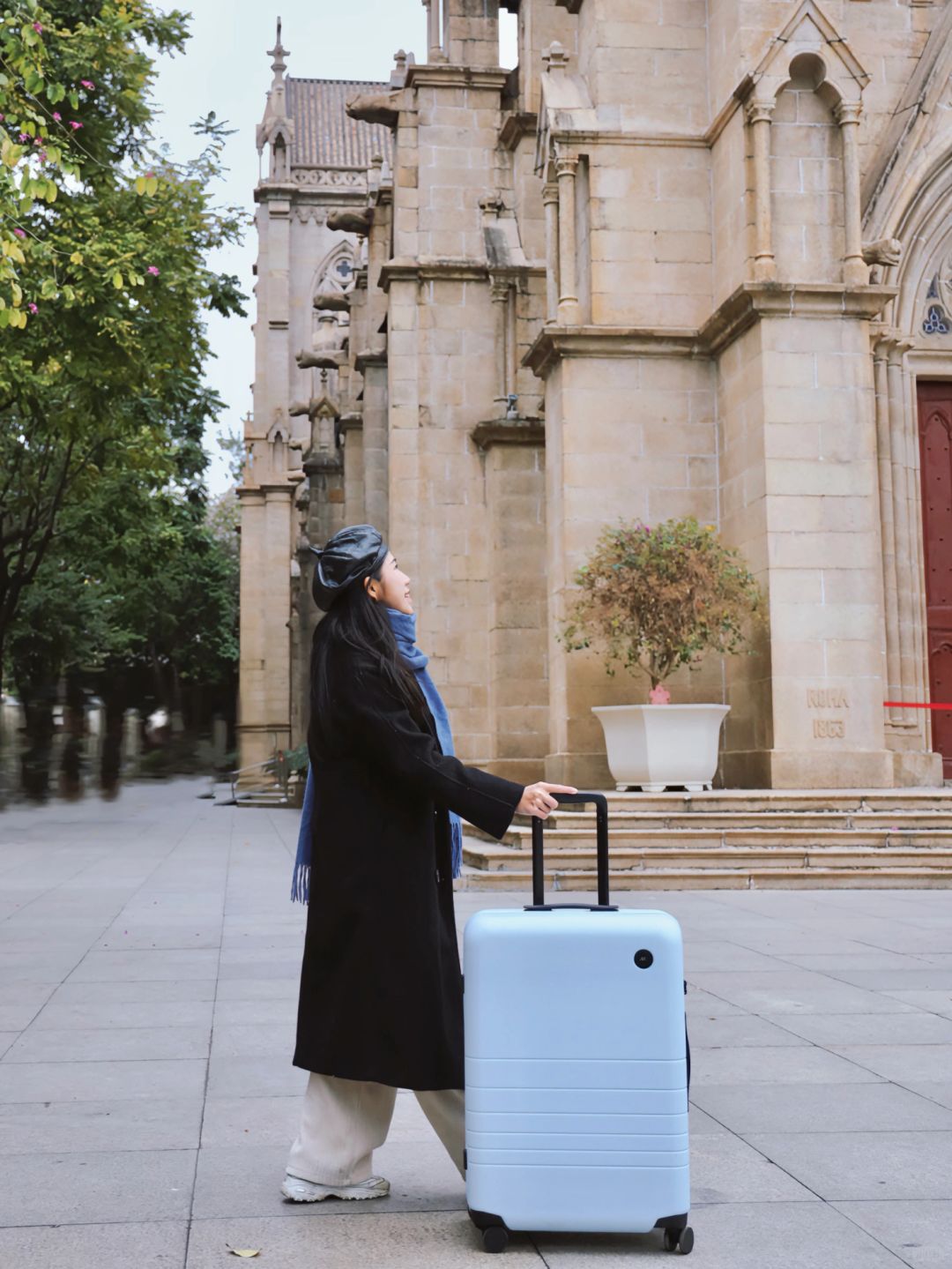 ✔️道具tips,拍照时可以带上一些道具,让照片不那么单调,像我就带上高颜值的行李箱当拍照道具好看又出片!我每次旅行都会带上这个加拿大品牌的mono行李箱,法式极简风的外表很显高级。Monos行李箱分类收纳的设计,装下7-10天的旅行行李都没问题,而且轻便易推,我拉着它citywalk一整天一点也不费劲,轻轻松松~