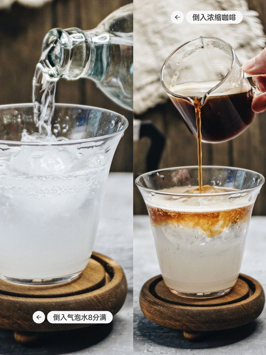 我的手作日常 这两天温度直达30℃,整个人都昏昏沉沉的。 一杯提神的咖啡就显得尤为重要。 香甜的荔枝和醇苦的意式浓缩咖啡,简直是王💥CP 入口还有充盈的气泡,回甘有一点酒香 我心中的白月光,非它莫属了。 🍹 调饮方法在P4和P5。