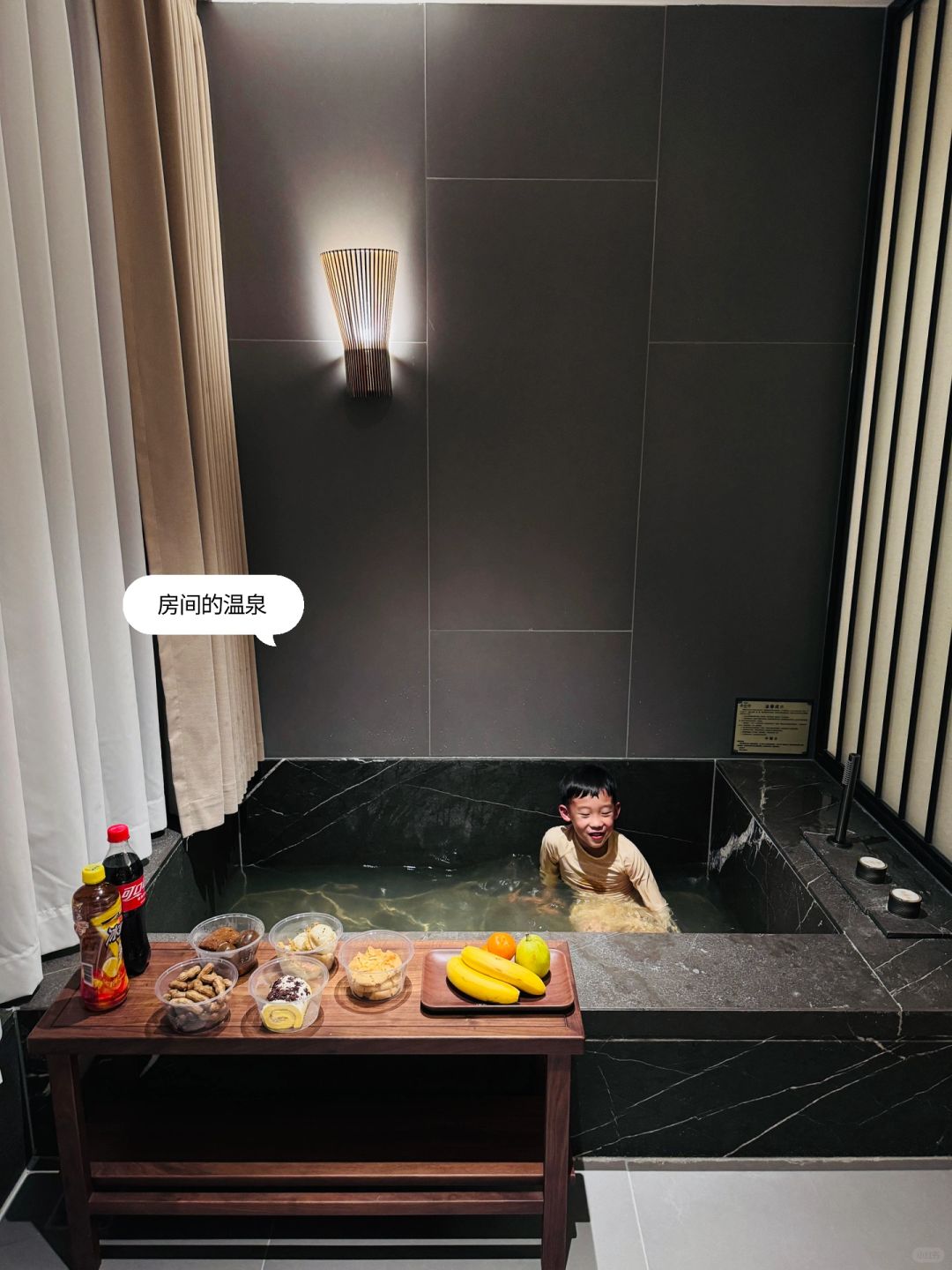 1️⃣可以就选择景区内的酒店,每个房间都有小温泉可以泡,带娃泡真的好方便!