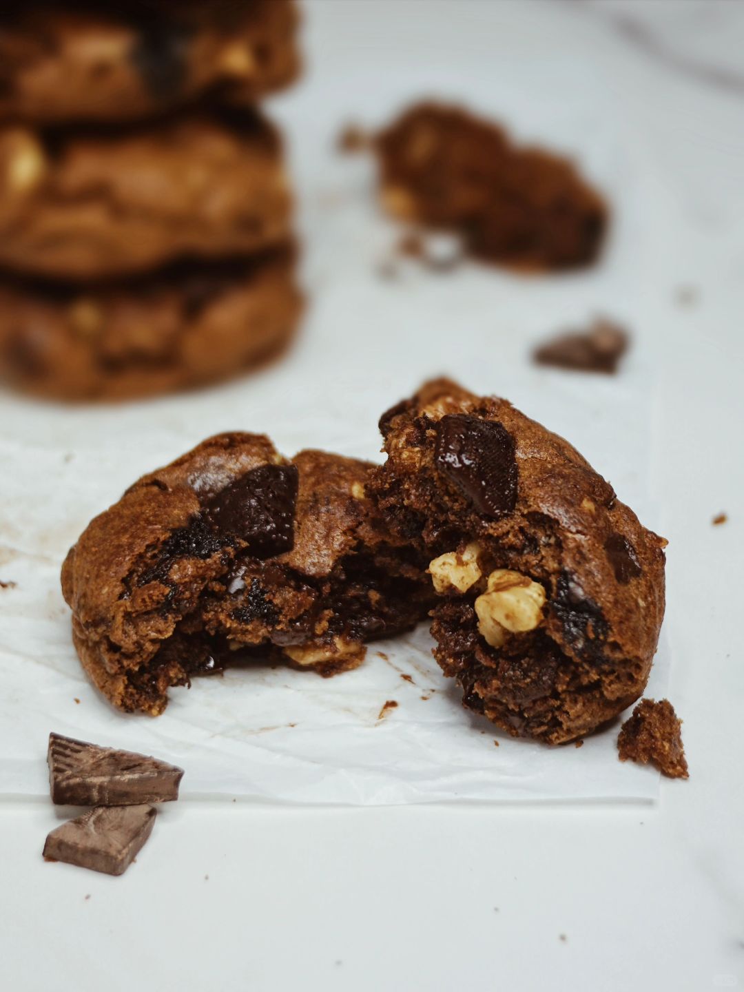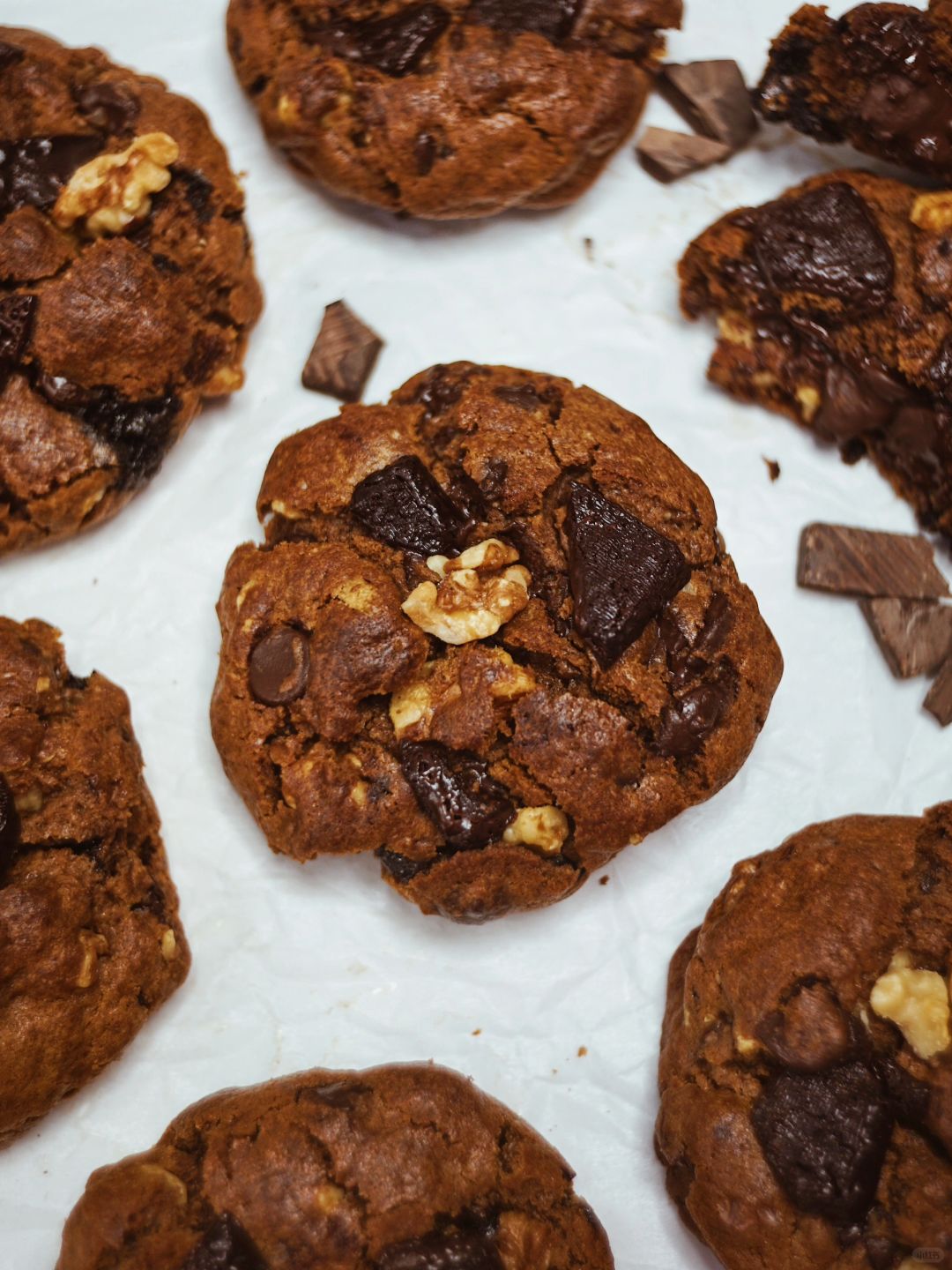 ins爆🔥的美式纽约软曲奇饼干,介于酥脆的饼干和松软的蛋糕口感,好吃的我词穷啊。里面还有核桃仁和巧克力🍫在烘烤的过程里,我就闻到了美味的坚果香气。甜度刚刚好,做法也简单