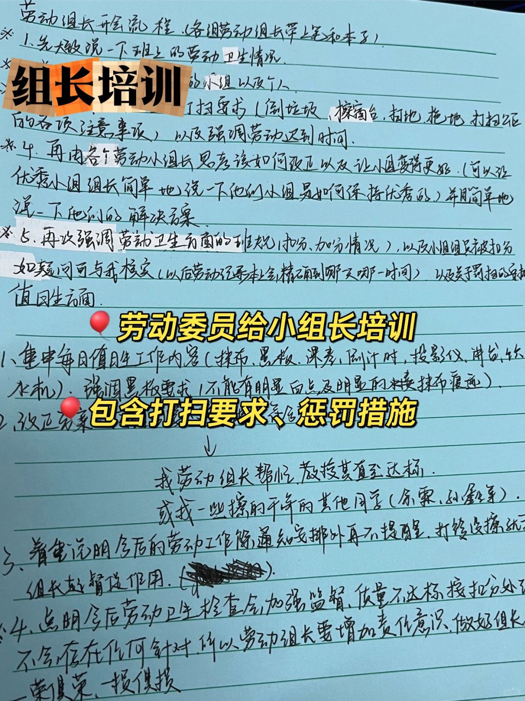 每两周劳动委员会给小组长培训,总结、提醒⏰zui近的卫生情况,对打扫要求和惩罚措施再次进行强调,这样下来,班级卫生正向循环♻️,班主任可以妥妥的当甩手掌柜啦[黄金薯R][黄金薯R]
