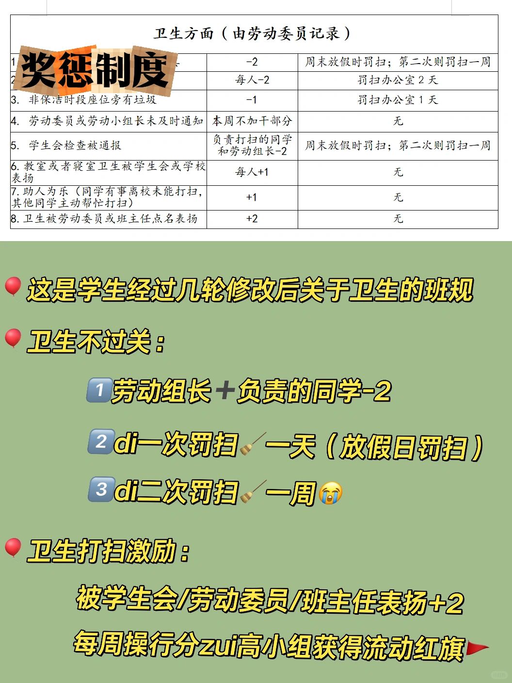 🍂卫生不过关,则劳动组长和相关同学-2,di一次打扫一天,di二次罚扫一周🥹