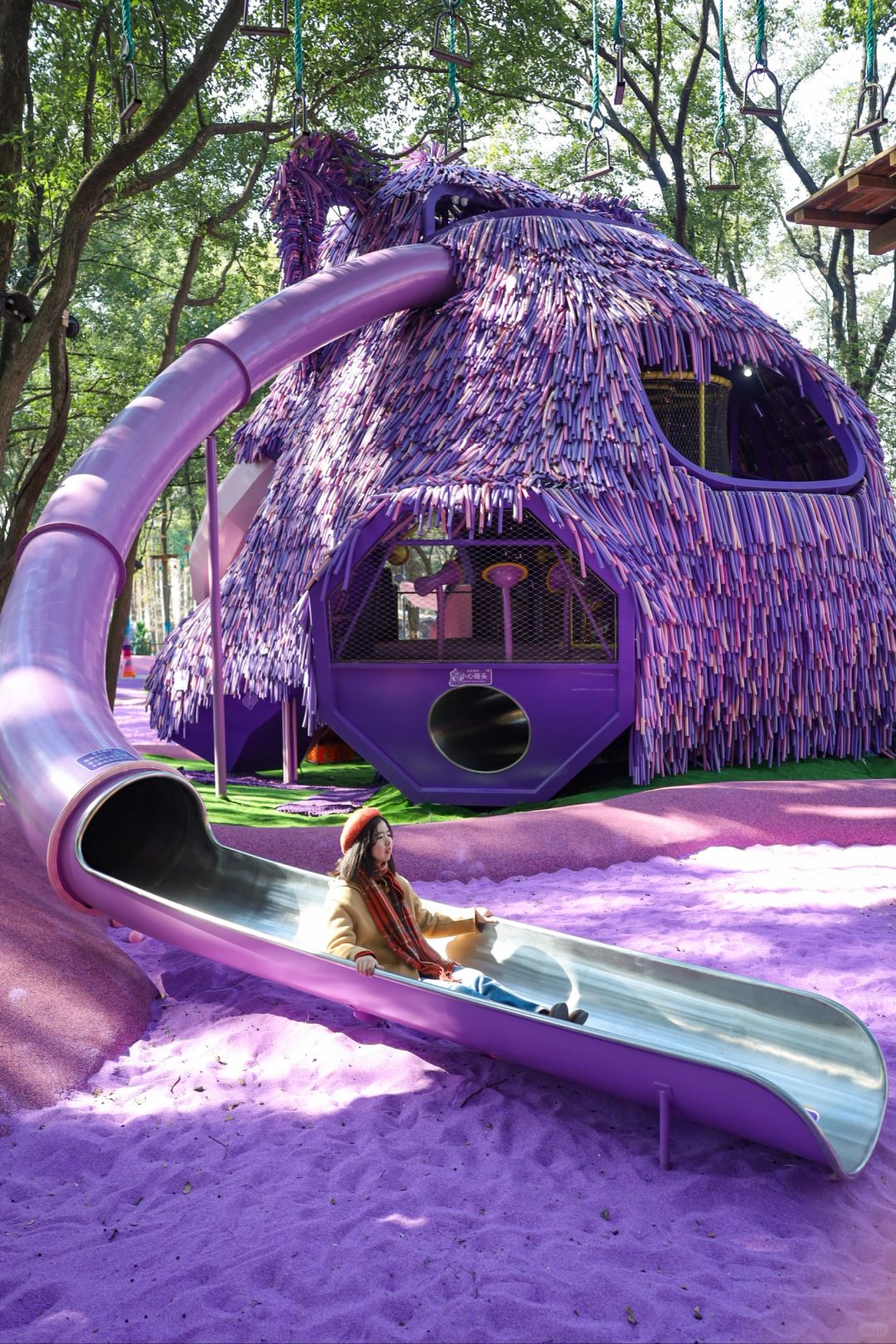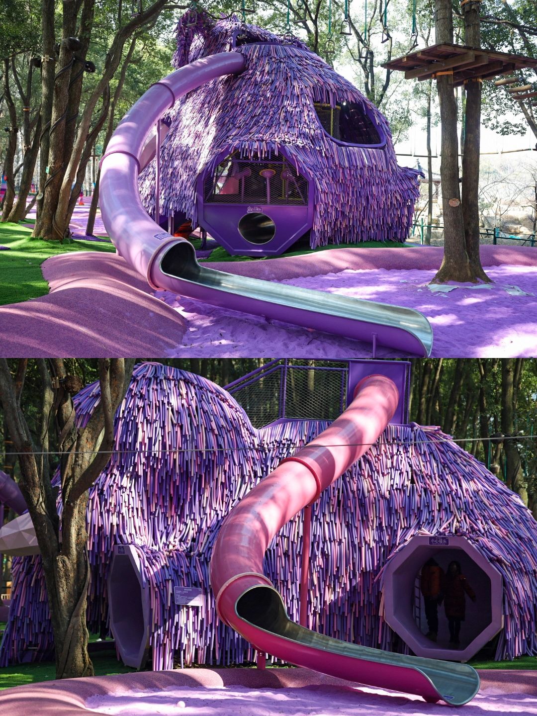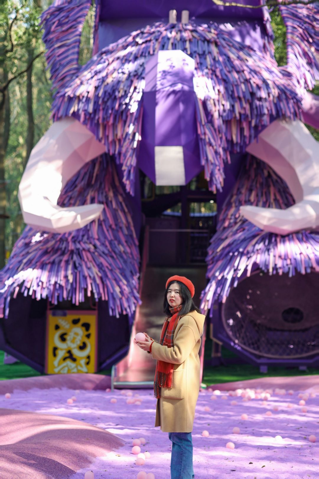 最近去东湖磨山玩,千万别错过这个宝藏拍照地呀❗️ 闯入多巴胺童话世界,梦幻的紫色猛犸象和沙滩好出片📸晴天光影太好看啦😭 还能亲密接触羊驼、小鹿等可爱的小动物,要被萌化了 🏠东湖之森.洛嘉森公园 👉导航磨山南门进入 📝建议穿颜色鲜艳或纯色衣服,多和场景互动抓拍