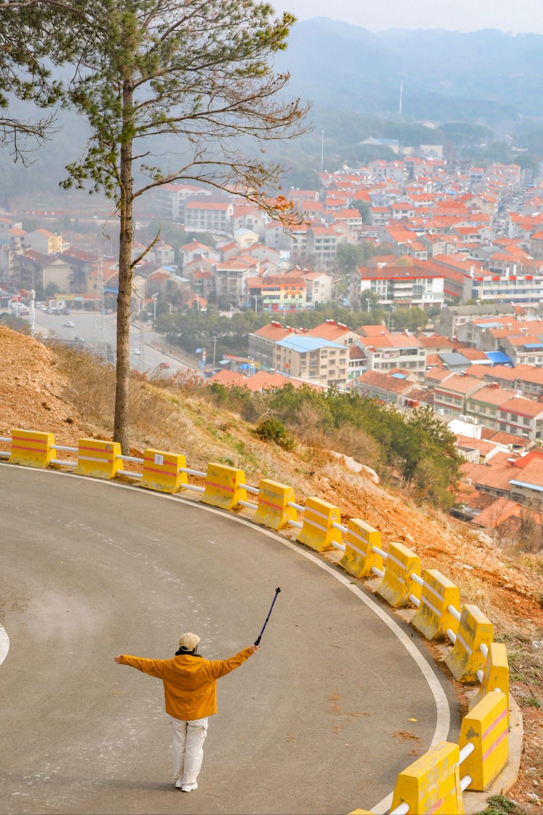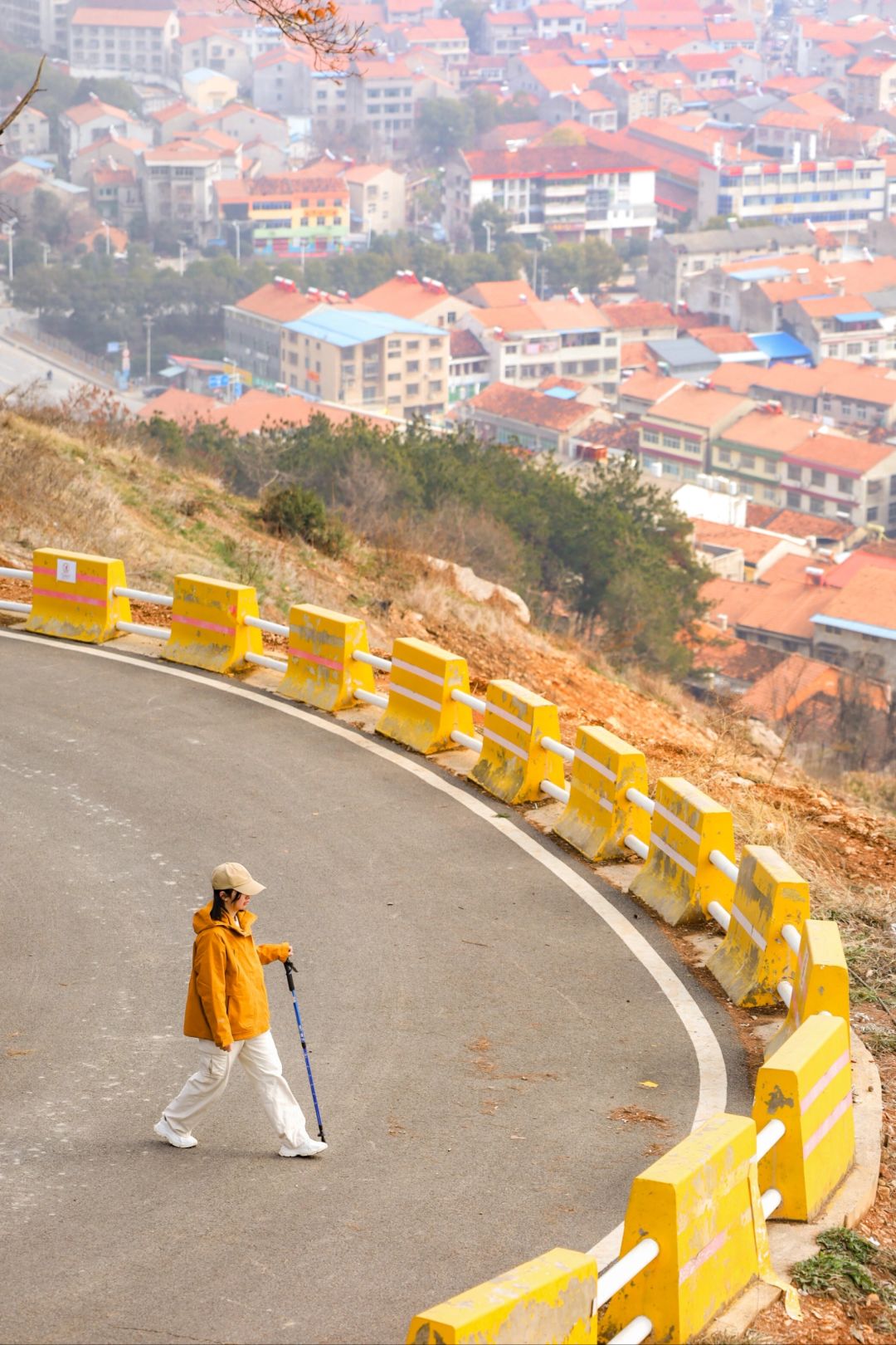 被称为武汉小青岛的柱皮山,山不高很适合徒步,沿着高低错落的黄色围栏步道,20分钟即可登顶