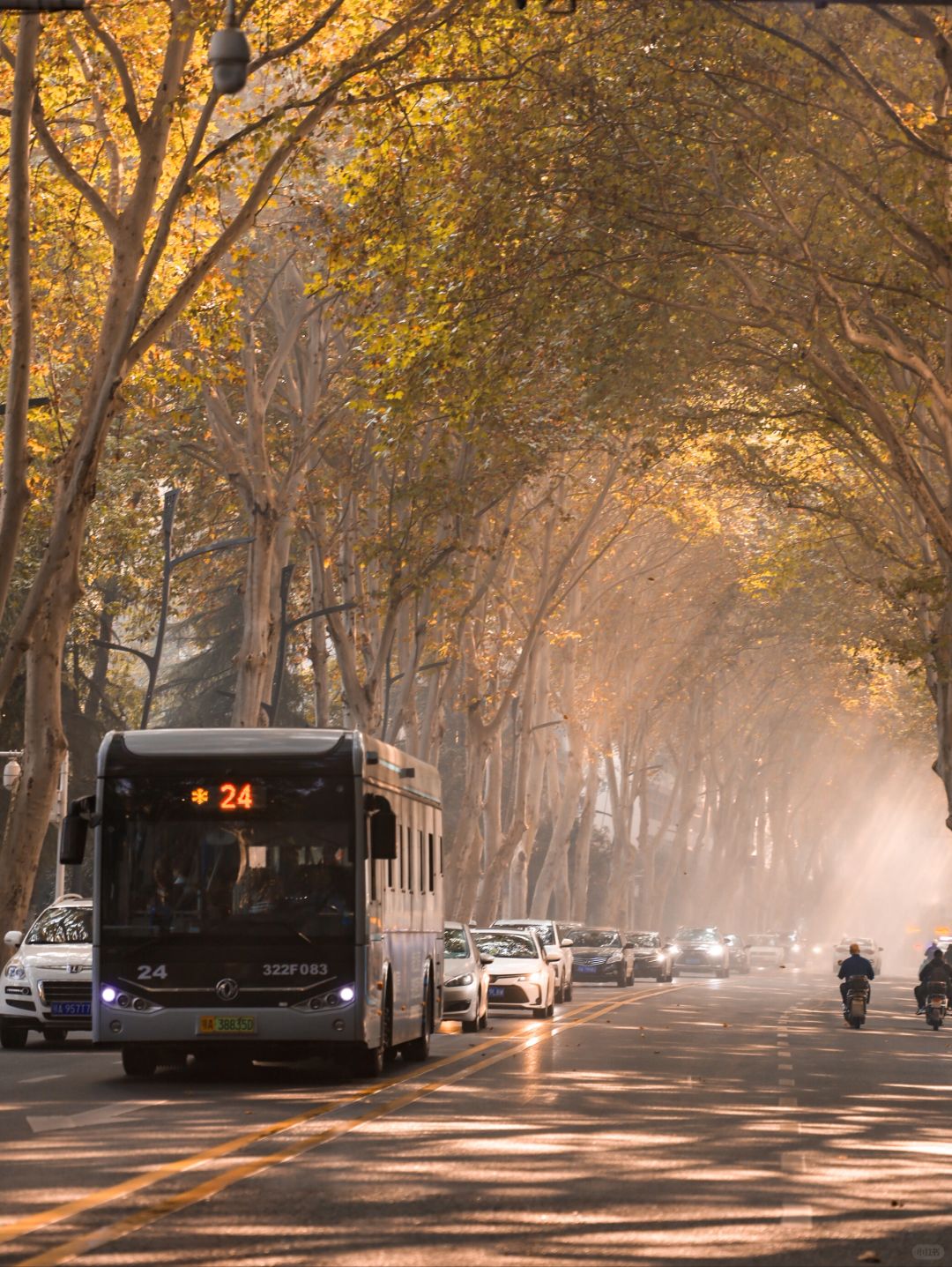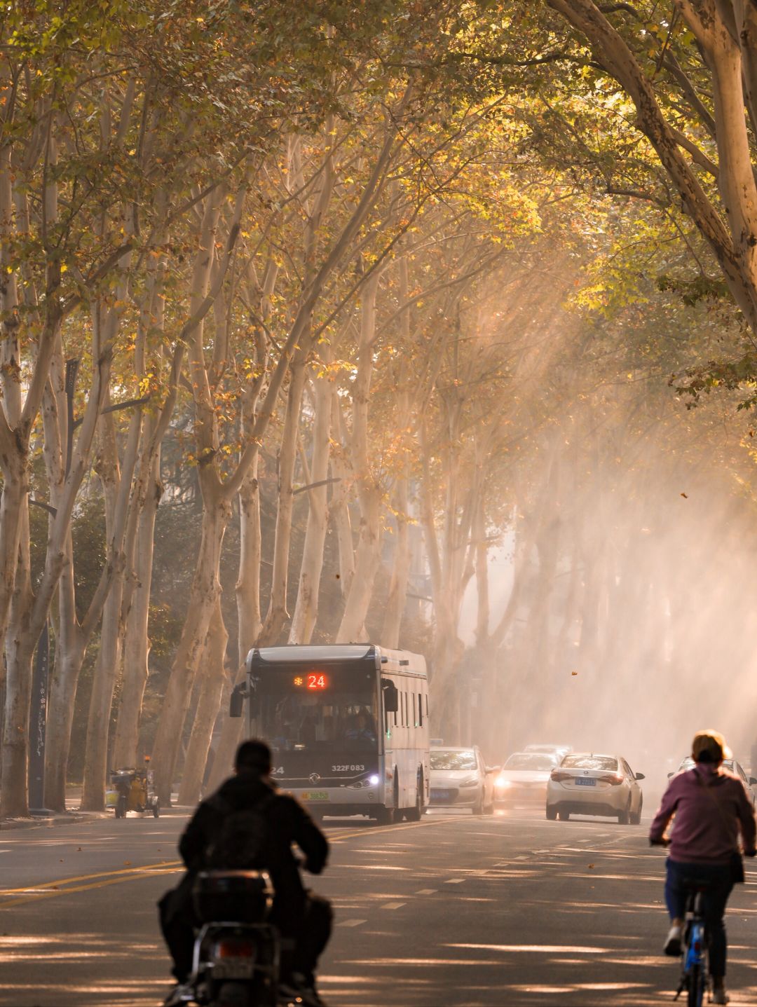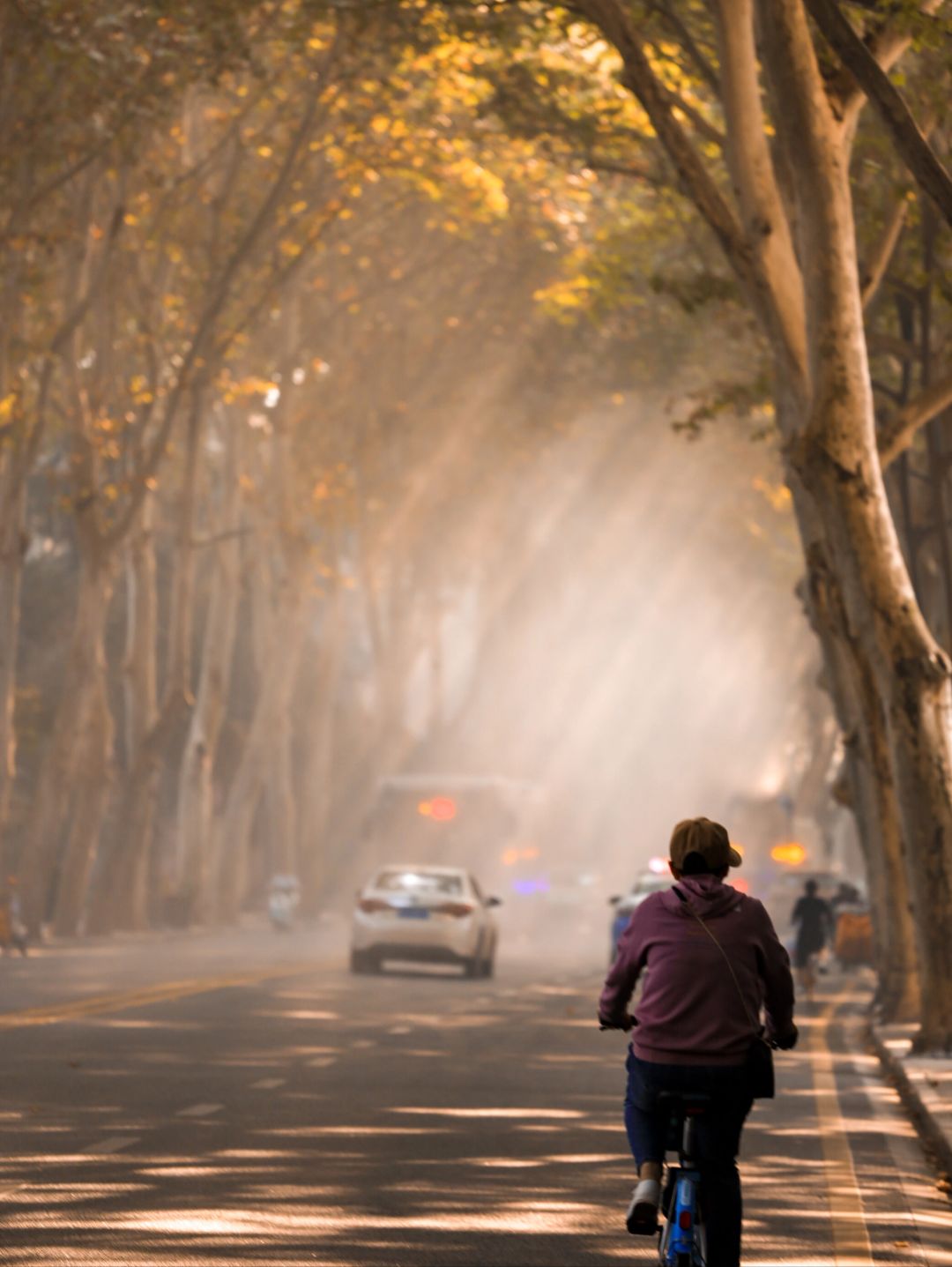 当丁达尔效应出现的时候,光就有了形状 早上解放公园路的梧桐太美了❗️❗️❗️ 雾霾天+洒水车,光影变得好明显 现在还没完全变黄,期待深秋的样子