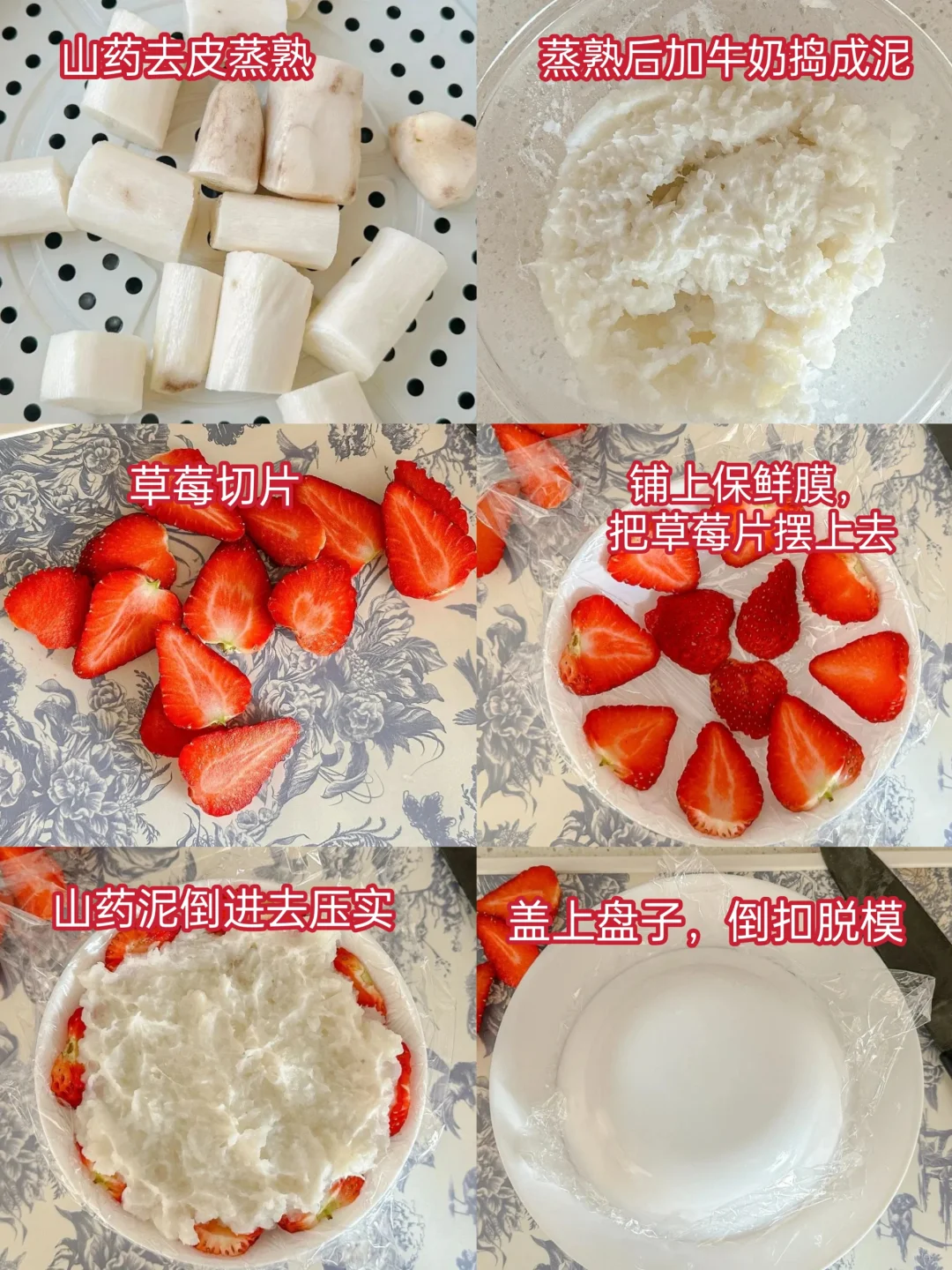 软绵绵的山药泥搭配红艳艳的草莓,看起来就眼前一亮的感觉。山药泥绵密细腻,口感也十分清爽,入口即化!再搭配上酸甜的草莓,一口下去草莓的汁水包裹着山药泥,而且多吃山药还能养胃,帮助肠胃消化吸收,老少皆宜,小孩子和孕妈妈都可以吃的,绝了嗷家人们!完美融合!
