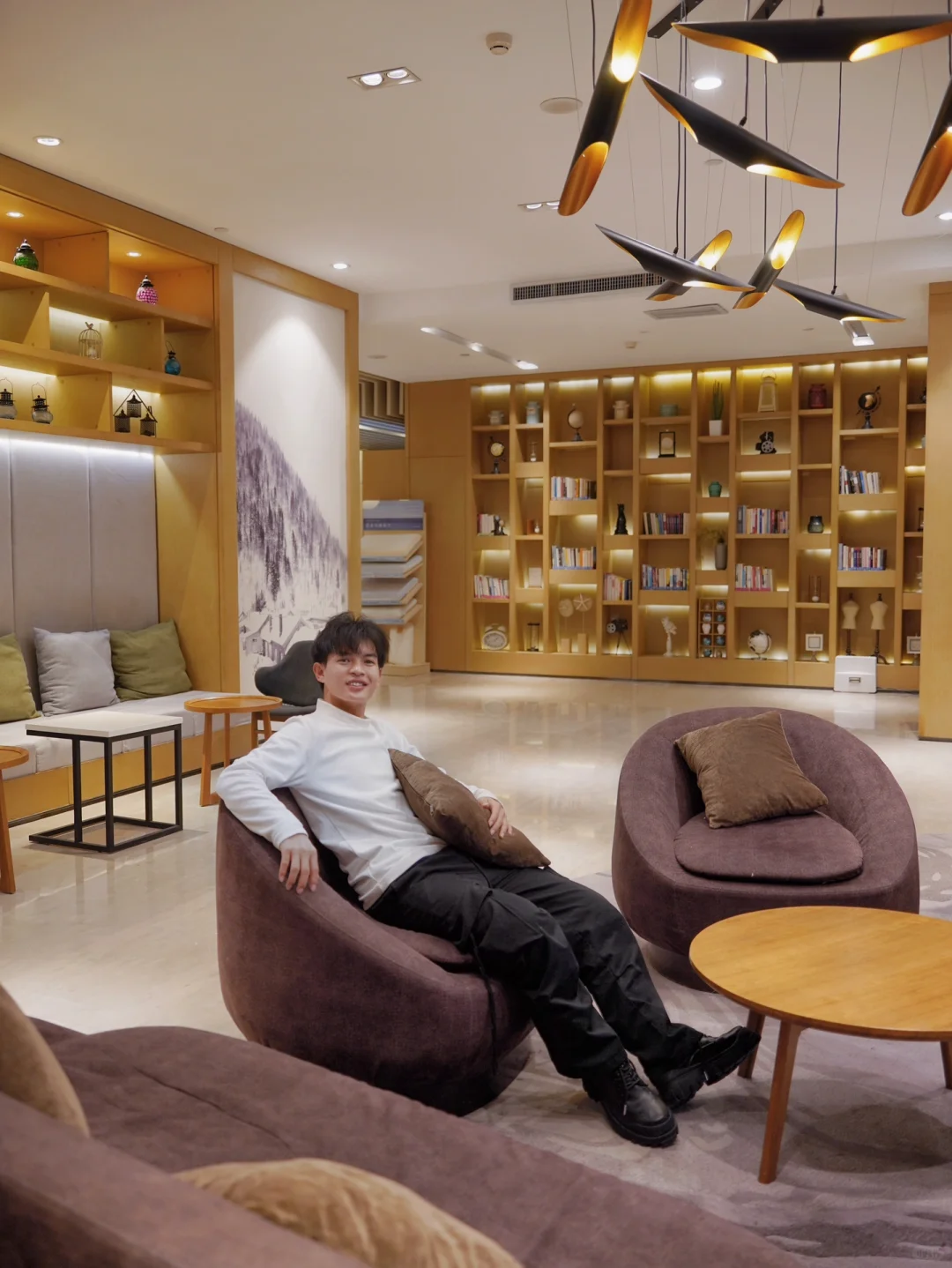 🔸特别是哈尔滨4点天就黑了,晚上比较漫长。酒店一楼的休息空间布满书籍,有图书馆的感觉,每一本书都是能借走的,我走之前专门借了一本,在回广州的飞机上看!!准备下一站去别的城市亚朵还哈哈