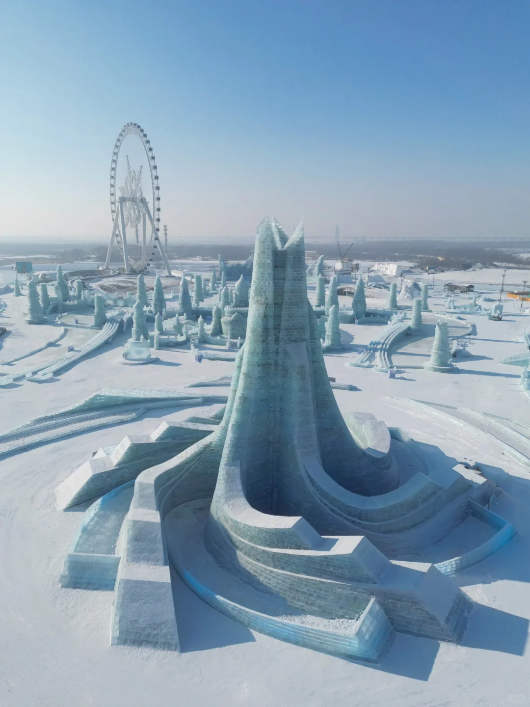 4️⃣冰雪大世界9:30前排队10:00入园,先冲大滑梯再冲摩天轮,去晚了要排3个小时不划算