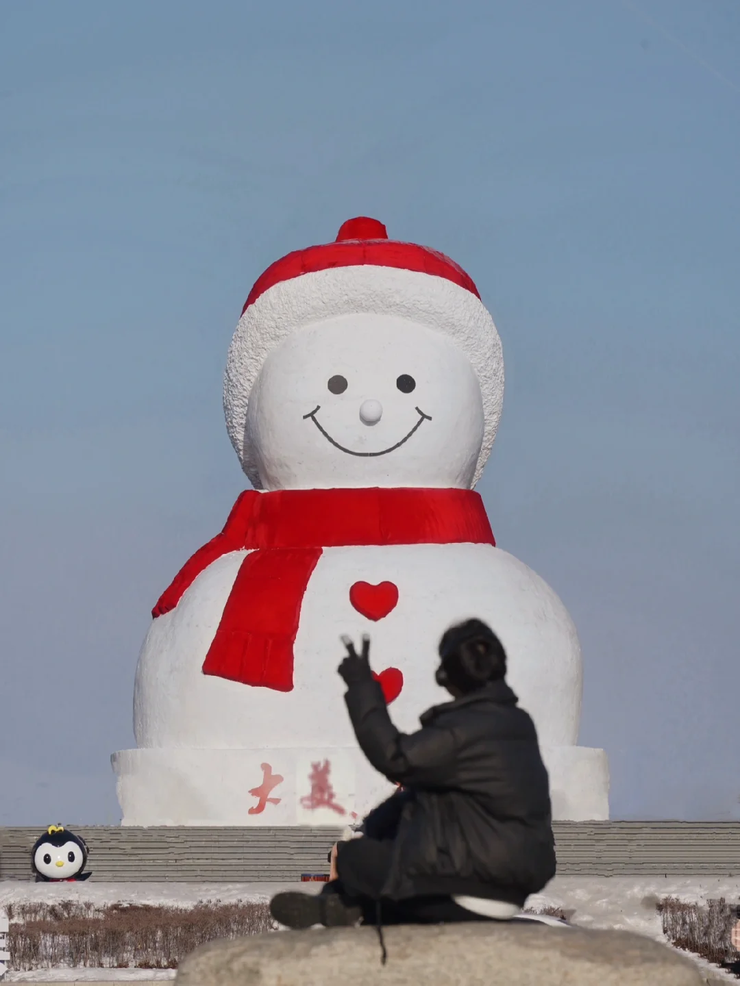 音乐走廊对面的马路上有一块石头,可以避开人群跟雪人合影