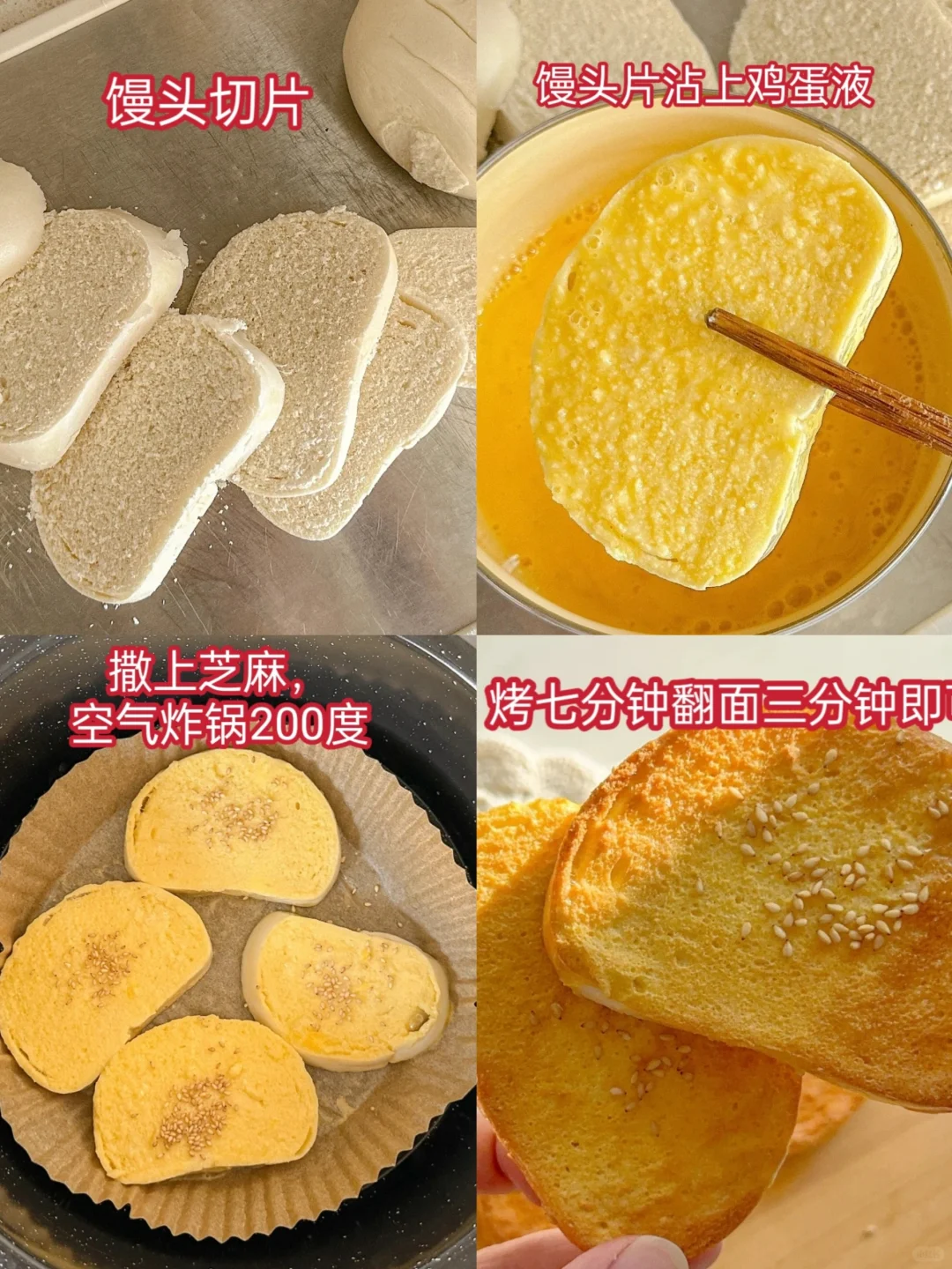 裹上鸡蛋液的馒头片经过空气炸锅的处理散发出一种蛋卷的味道,外皮是那种酥酥脆脆的,咬下一口,香脆的口感伴随鸡蛋的香气,里面的馒头还是柔软的,整体来说嚼劲十足!而且可盐可甜~喜欢甜甜的姐妹们就涂炼乳,喜欢咸香的姐妹们可以刷烧烤酱,直接一次性体验到两种口感!而且比烧烤店的好吃多啦!