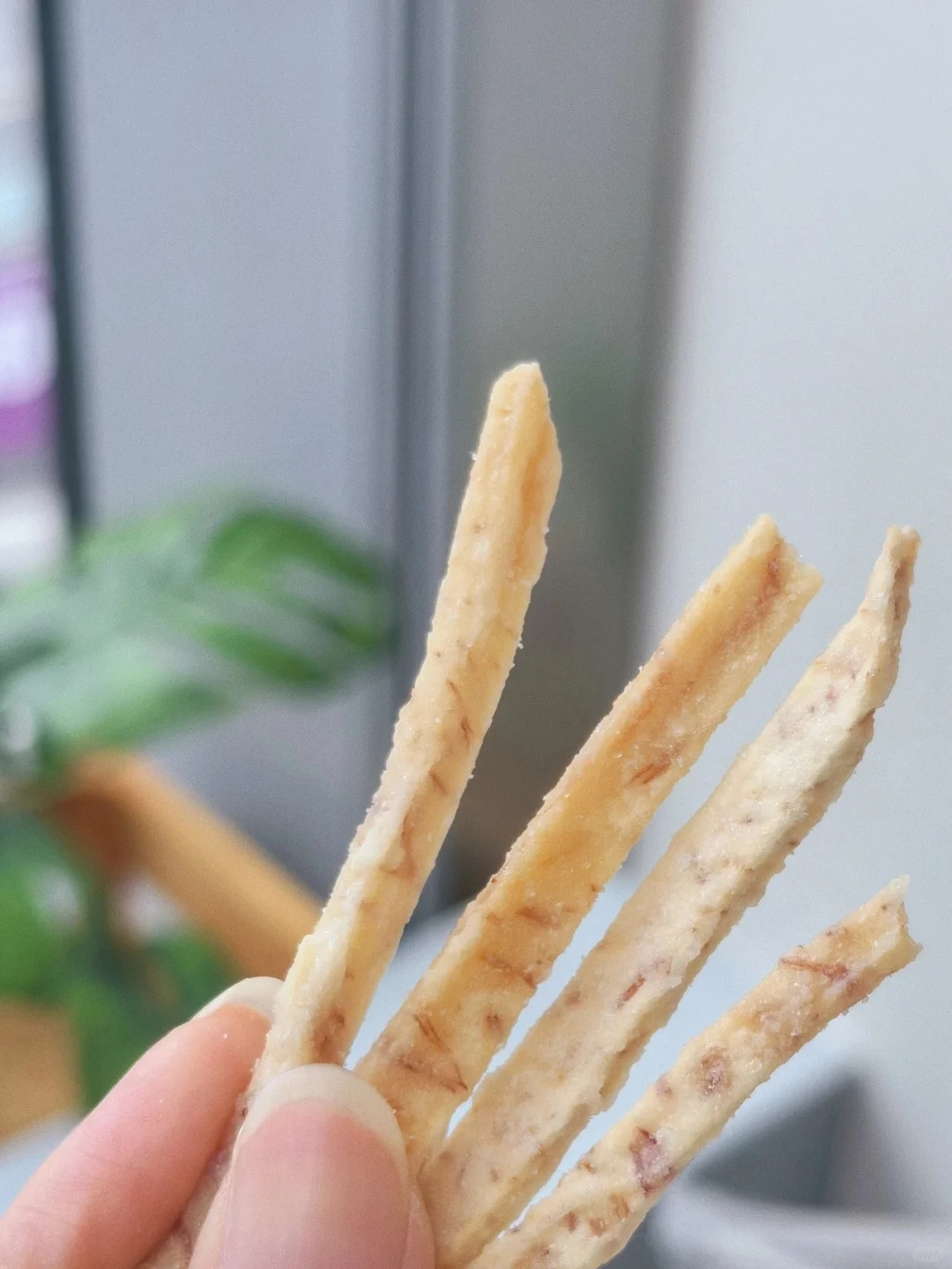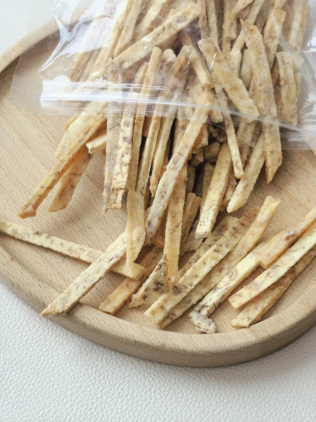 入口从迷惑到真香:不就普通油炸物?→有芋头香味欸→最后竟像在吃薯条!好吃!它切得挺薄,椒盐调味料放得恰到好处,不咸不腻又够有滋味。