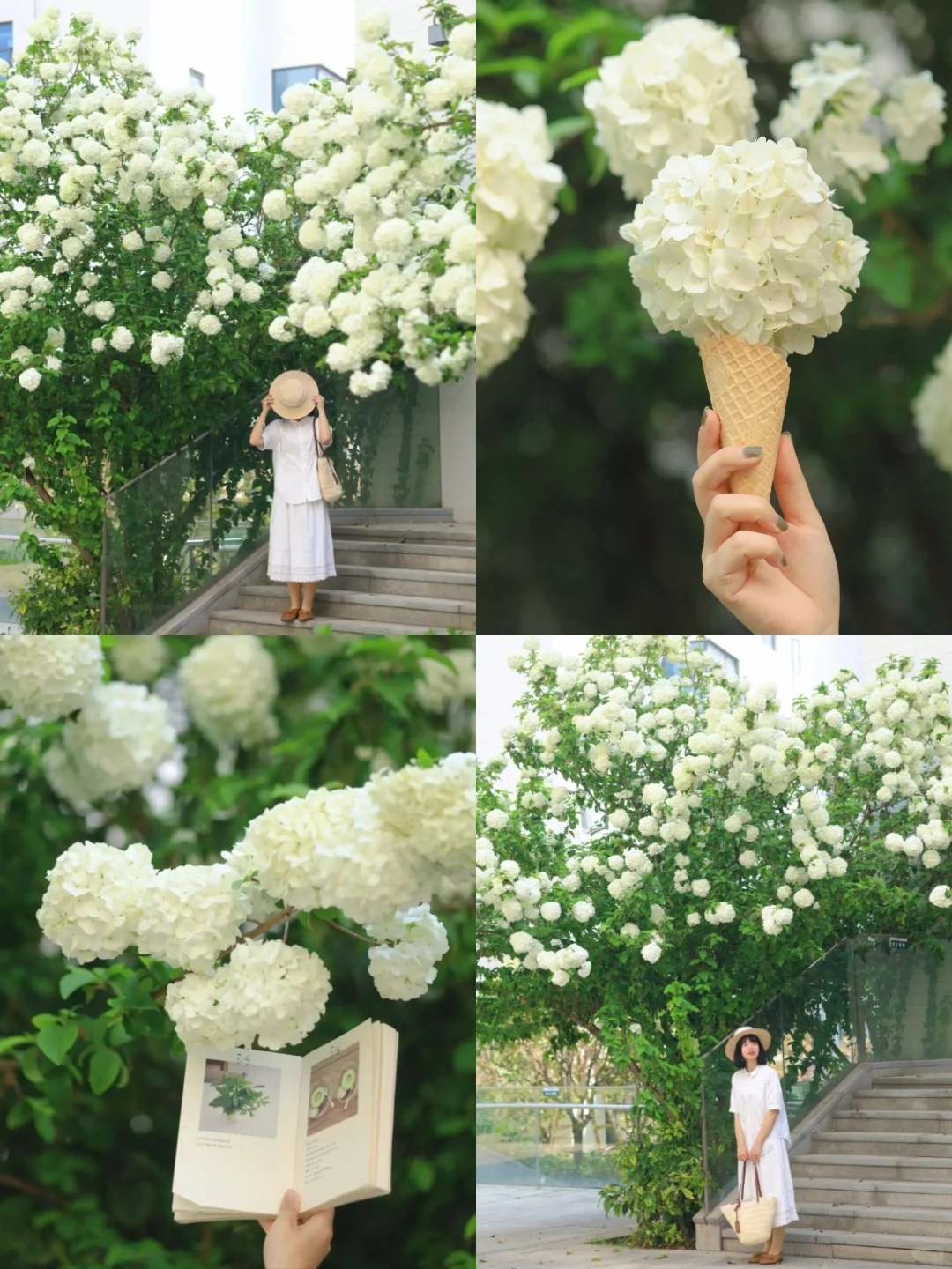 ✔️四月武汉赏花顶流当属木绣球,除了热门的沙湖公园,还有一片小众绣球花瀑可以独享美景 ✔️有四五颗木绣球,今年没有去年开的茂密,前3张是去年拍的 ✔️但找好角度也足够出片了,有玻璃楼梯和白色建筑很适合拍人像 ✔️这里节假日都没有人,不用去沙湖公园人挤人,也完全不用担心拍照社恐了 🏠洪山区创意天地09栋创意工坊 👉地铁8号线马湖站B口直达 ✔️从合美术馆直走几分钟左边就是,还有一片晚樱开的正好,可以顺便去美术馆看个展