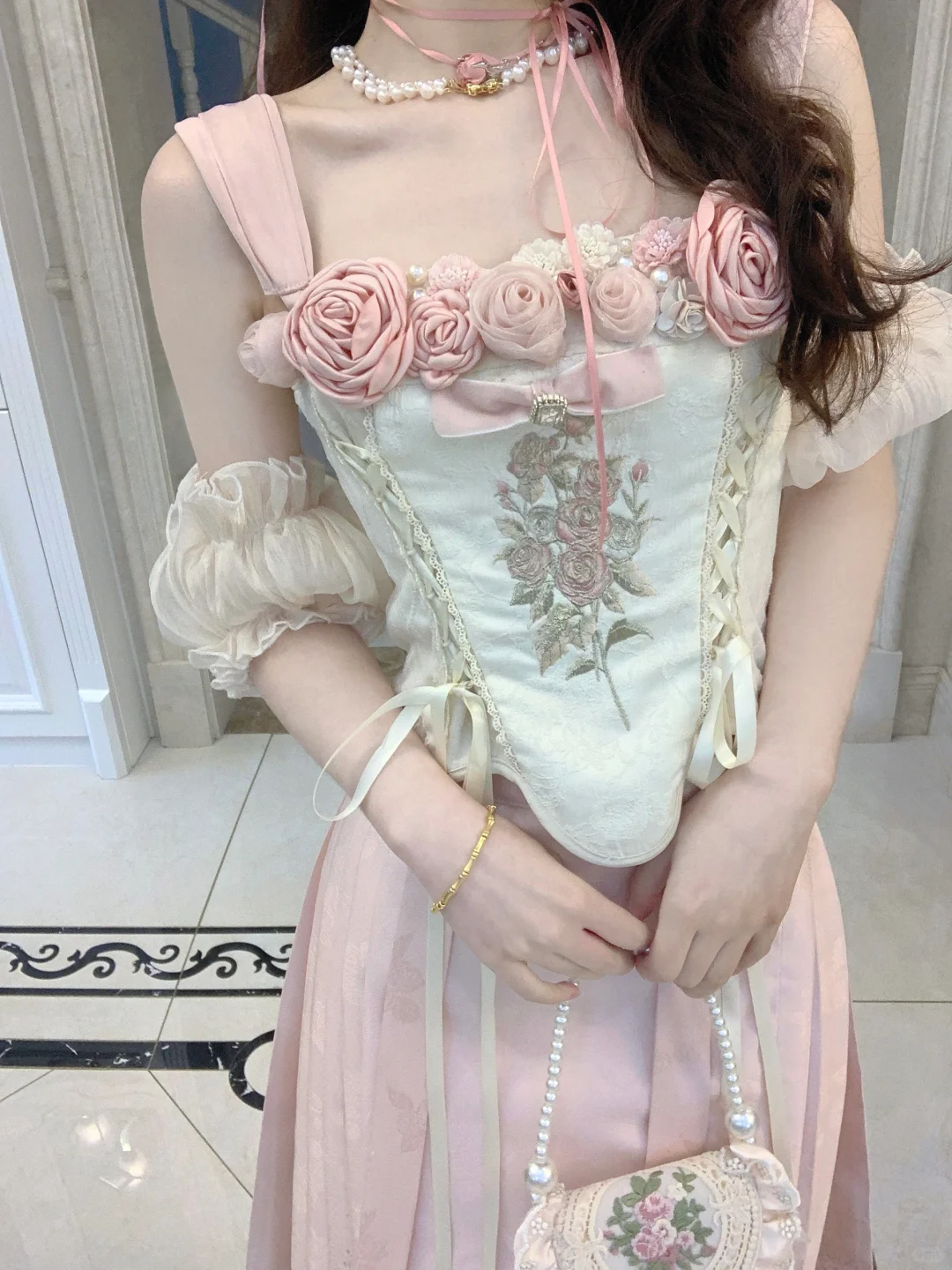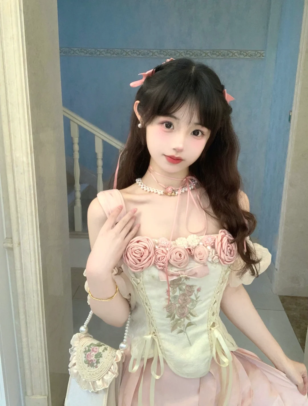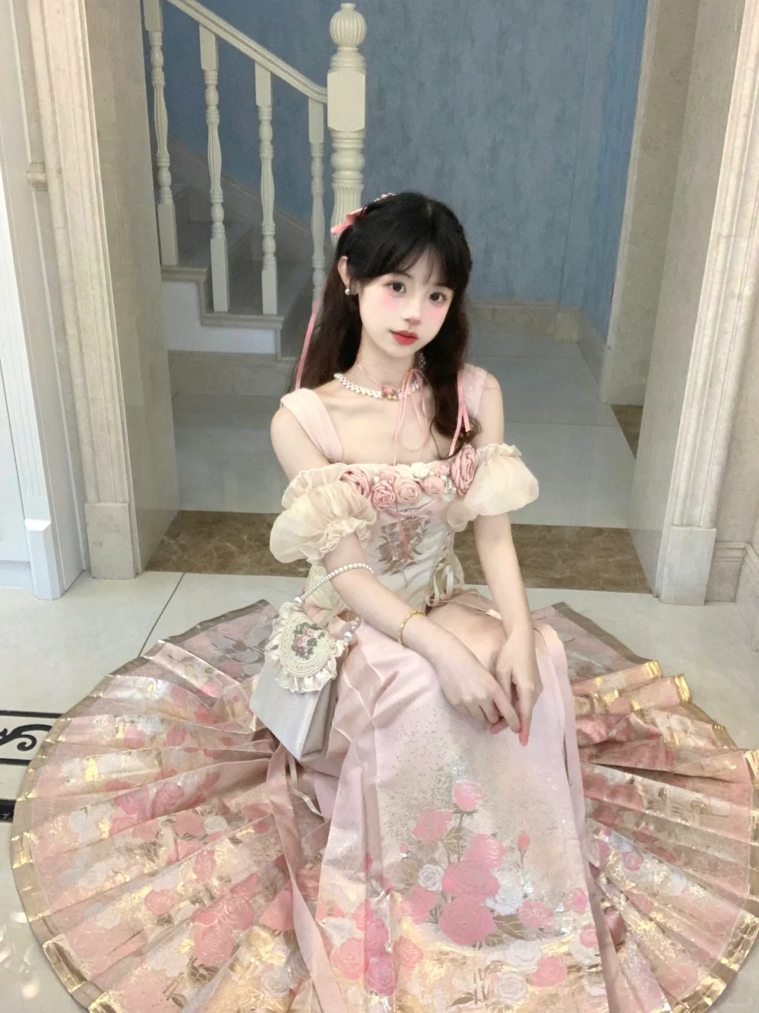 我的春日马面裙时刻: 复古玫瑰胸衣➕粉色马面裙 西式与中式的碰撞🫧 真的太优雅啦~