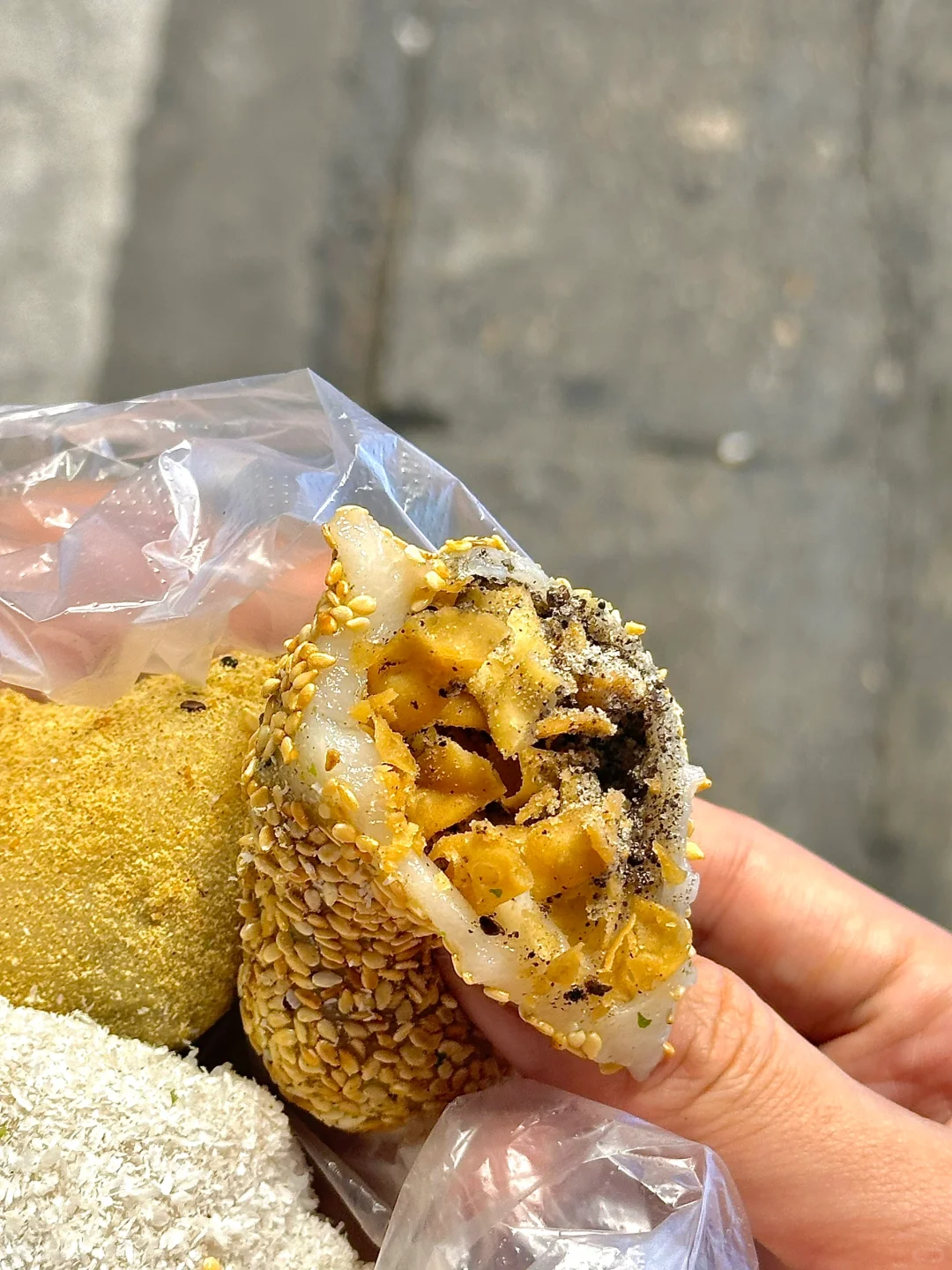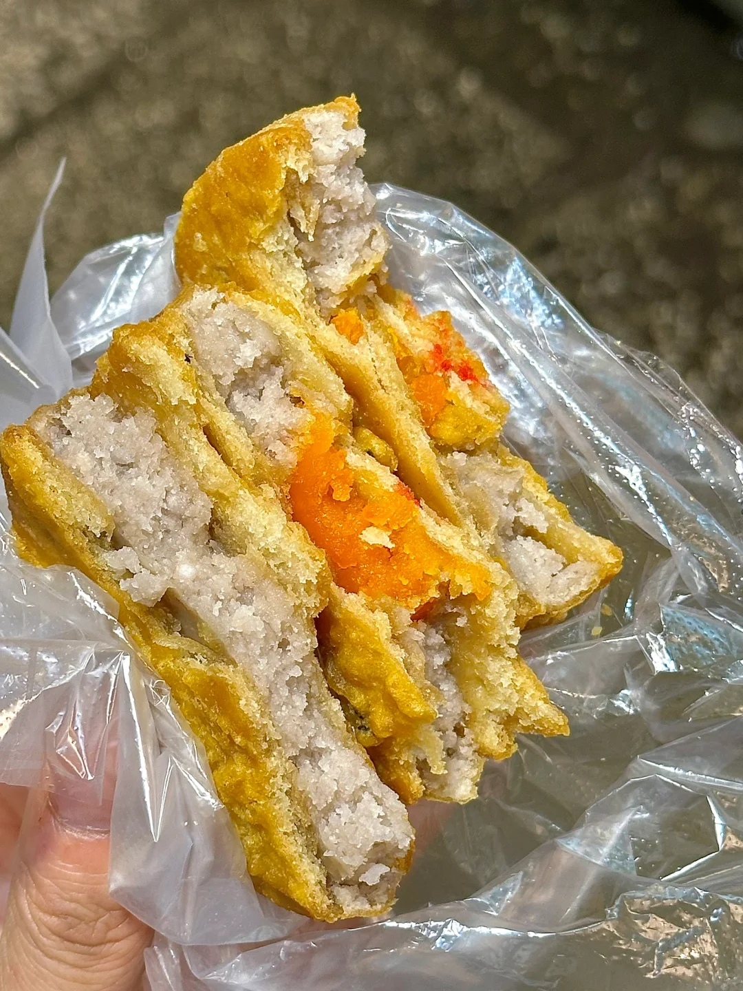 排队的人很多 本以为很好吃 外面是糯糯叽叽的里面包着脆脆的馅 不是很惊艳…