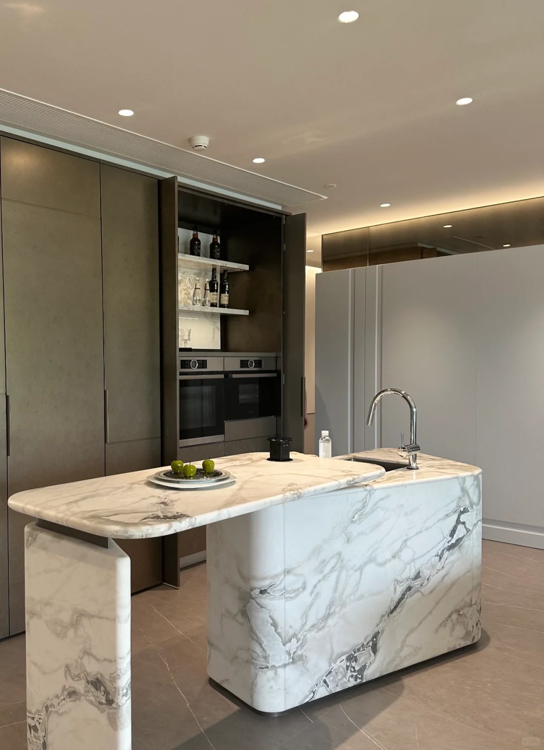 当时在现场看房的时候听到销售介绍的一句话印象很深刻:“兼具了艺术性和实用性”这次室内空间设计了很多隐藏柜体,解决了生活中的收纳痛点