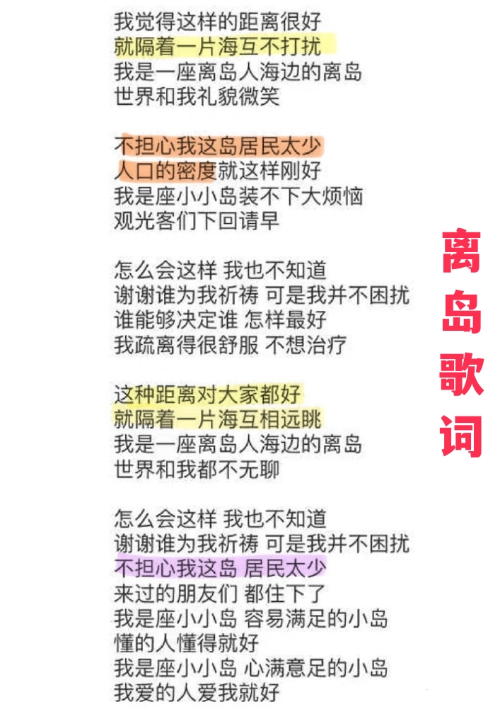 还有她《离岛》这首歌的歌词极具争议,后来这首歌也被全网下架。
