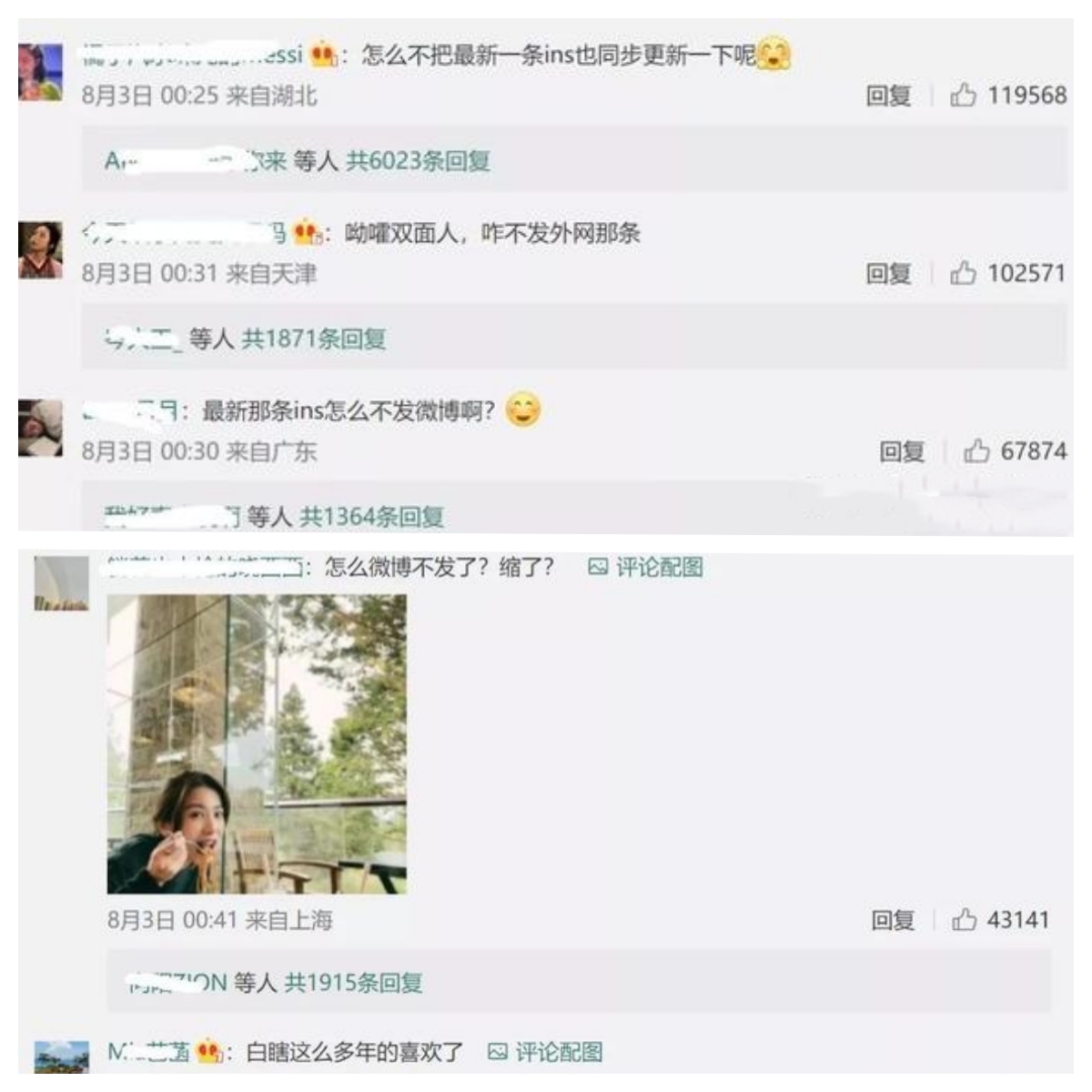 随后她的微博就被爆破,粉丝、路人纷纷留言让她回应,但她始终未做任何回应。