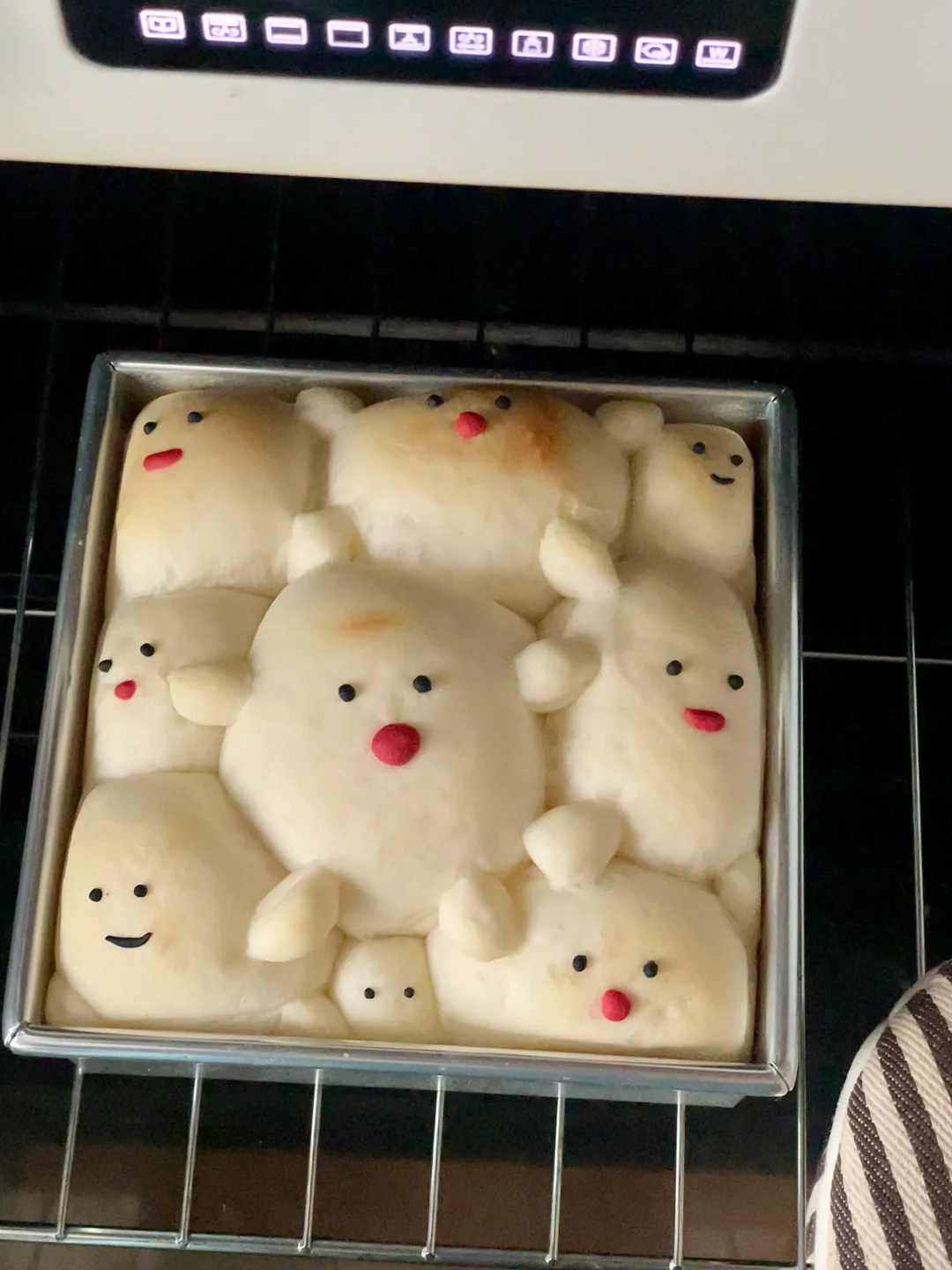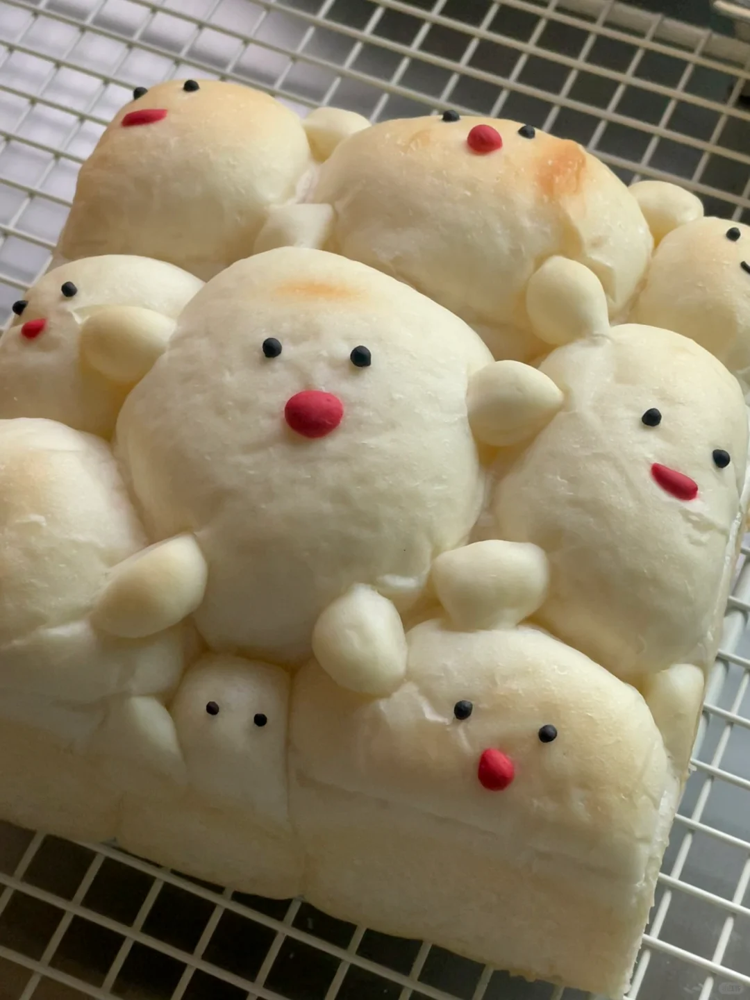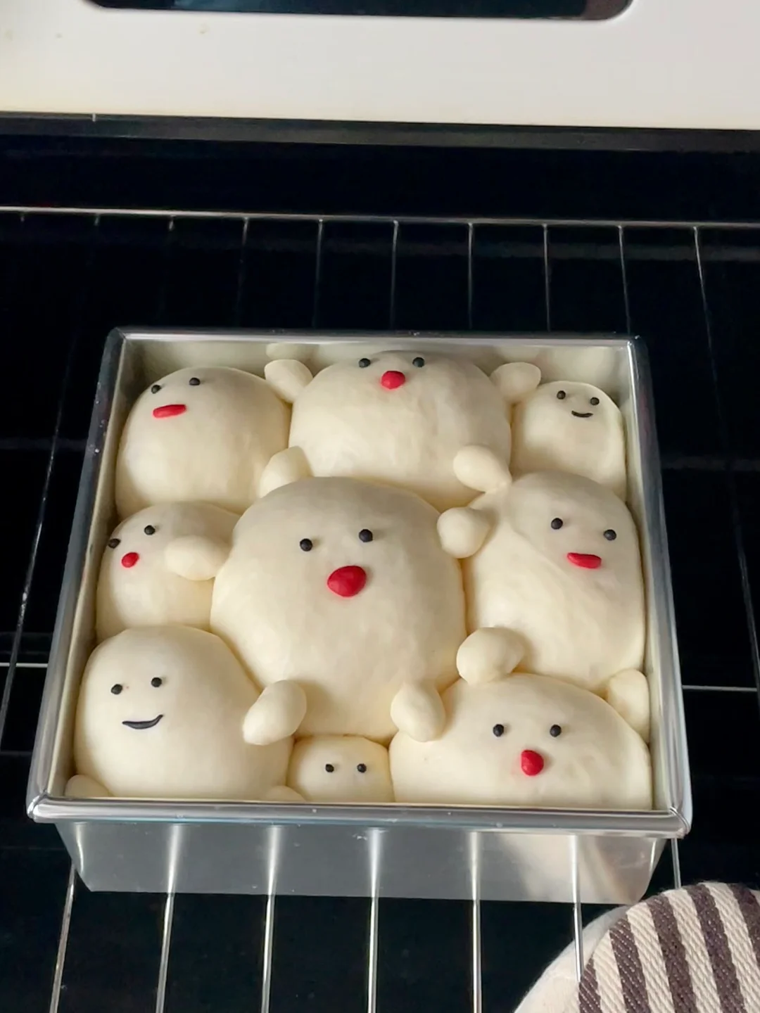 6️⃣切两小块面团,分别染上黑色和红色,给发酵好的面包加上细节