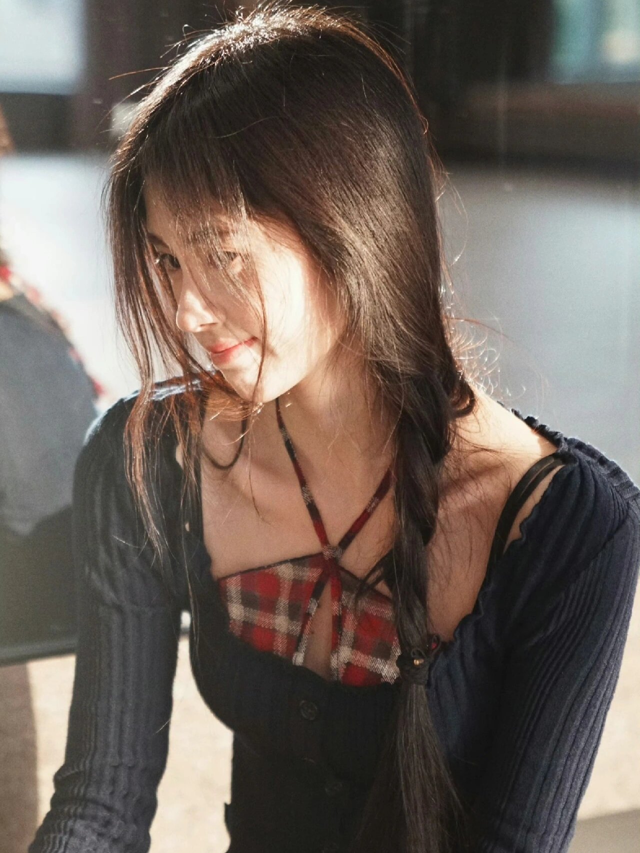 刘亦菲你要注意,背面的镜子给你反光了。