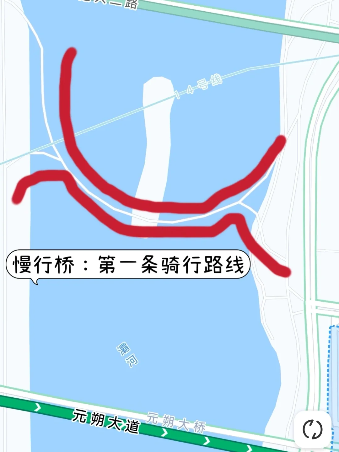 1️⃣慢行桥上:只有自行车🚲骑行进入或者步行🚶进入,娃骑行很放心,适合新手骑行!桥的两边还设置有休息区;骑行累了可以在桥上观赏灞河的优美景色,吹着河风太舒服啦!(参考图12)