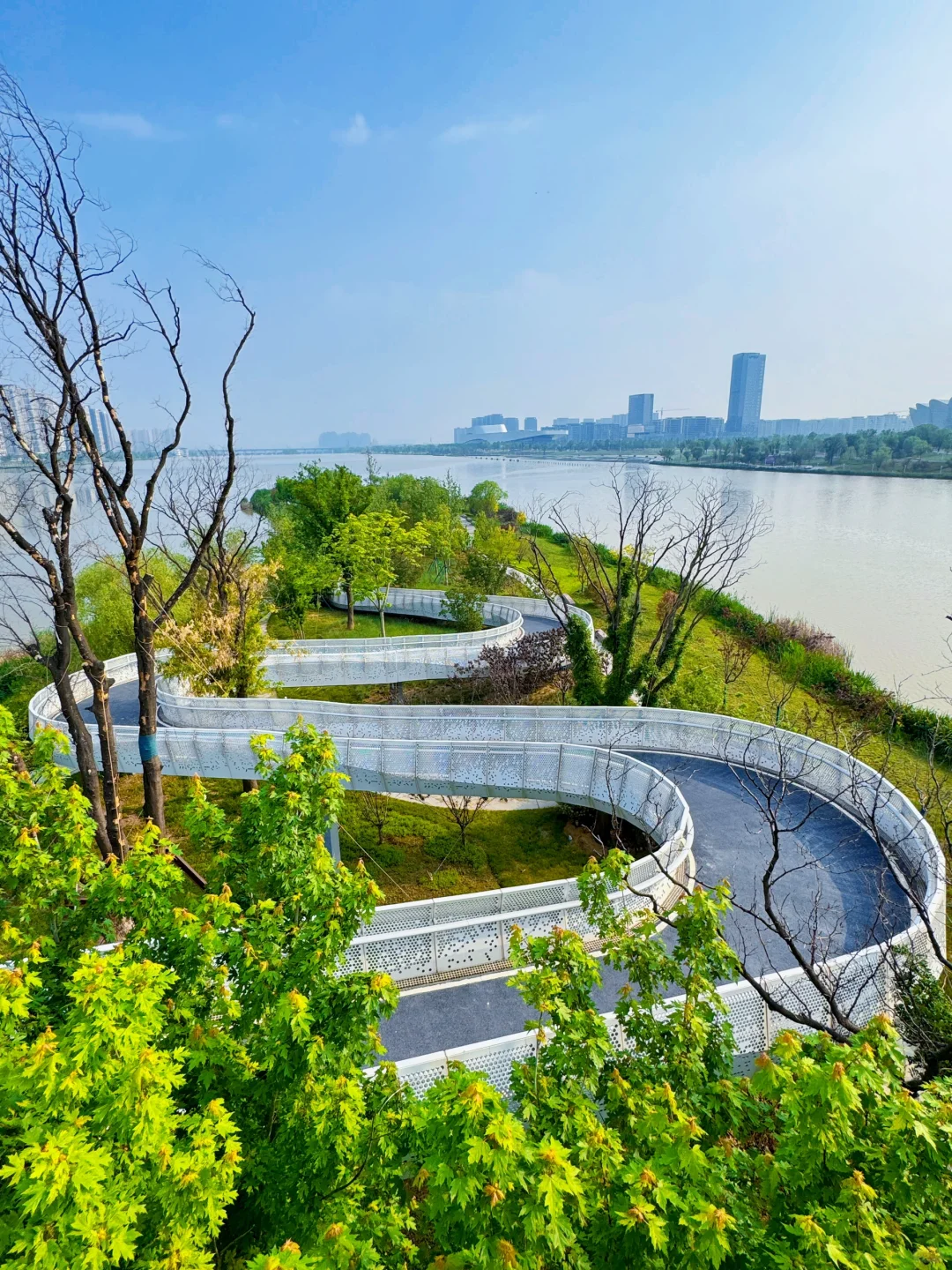 2️⃣顺着灞河的“三河一山”绿道向奥体中心骑行: