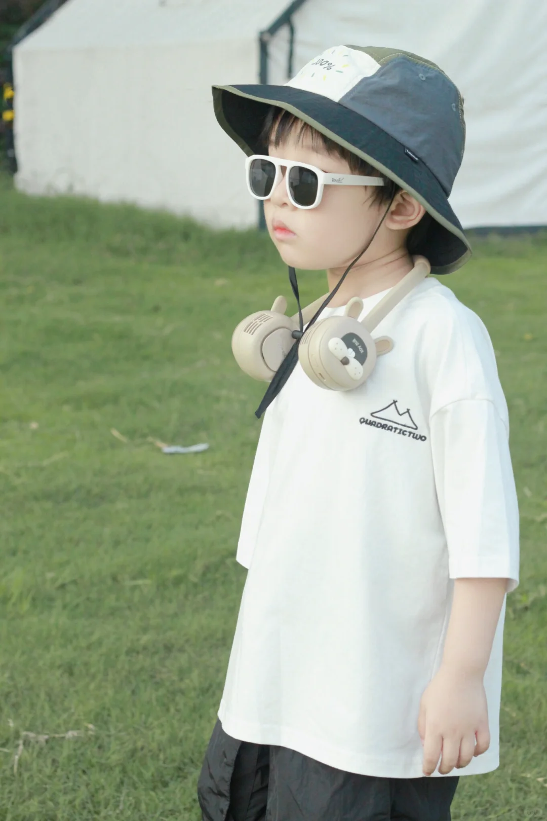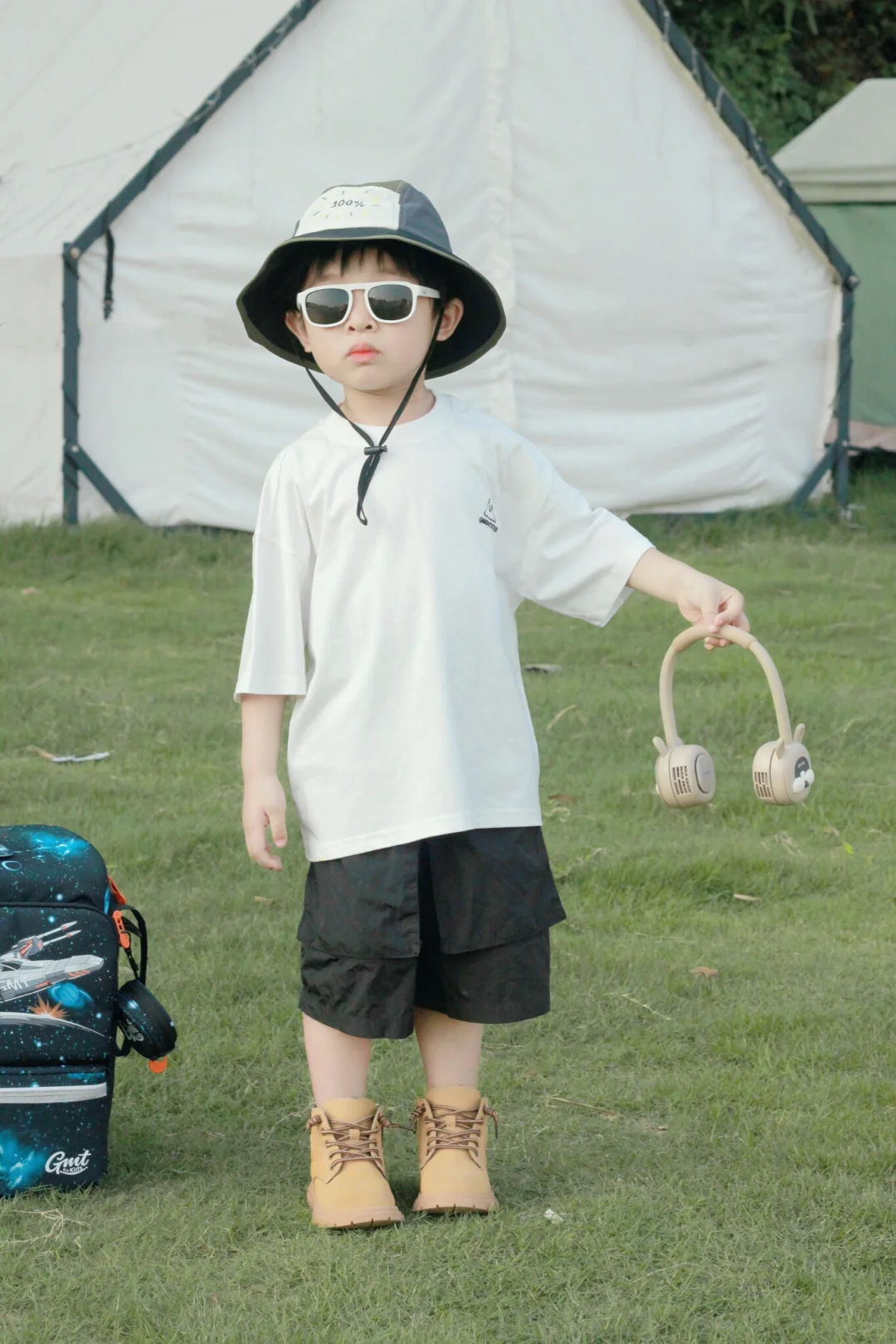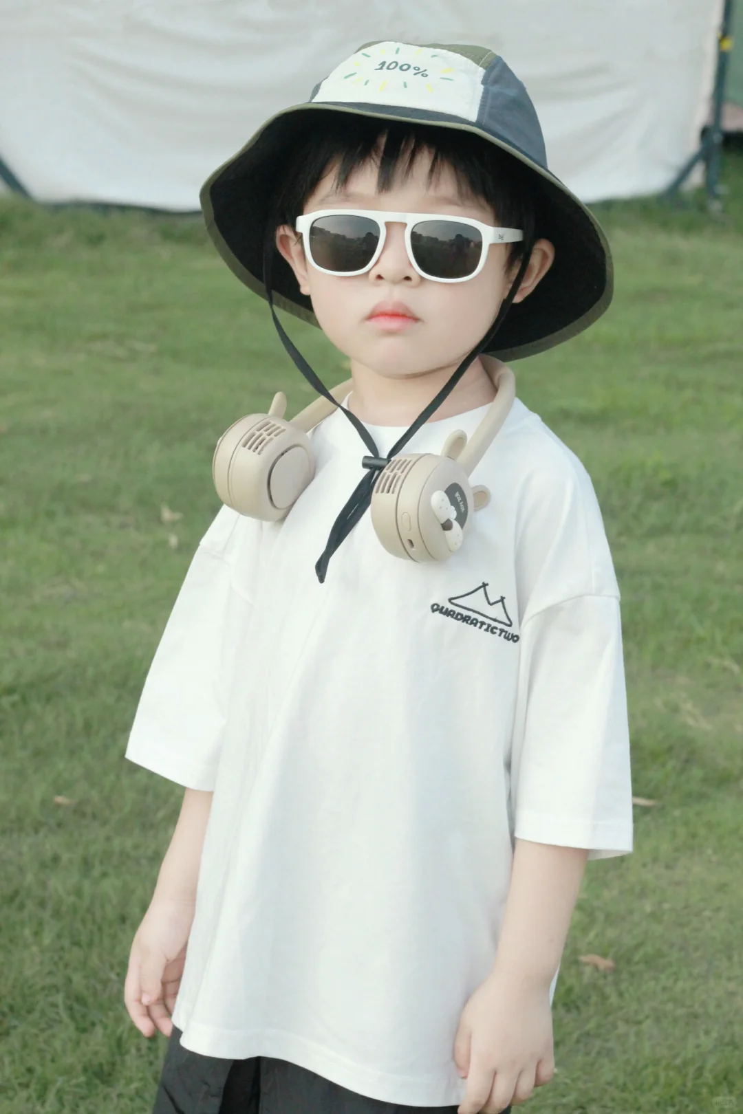 露营短袖套装挂脖风扇儿童夏季挂脖风扇夏季儿童穿搭风扇两次方户外运动亲子zoyzoii