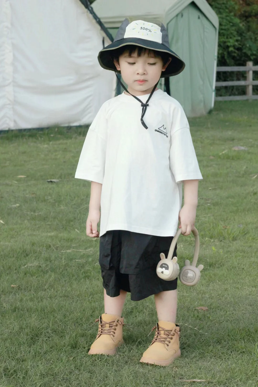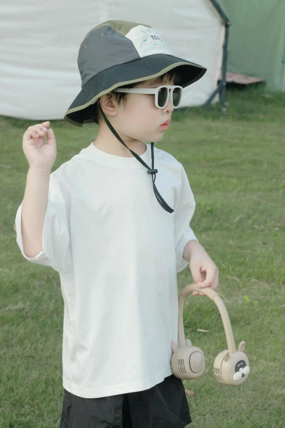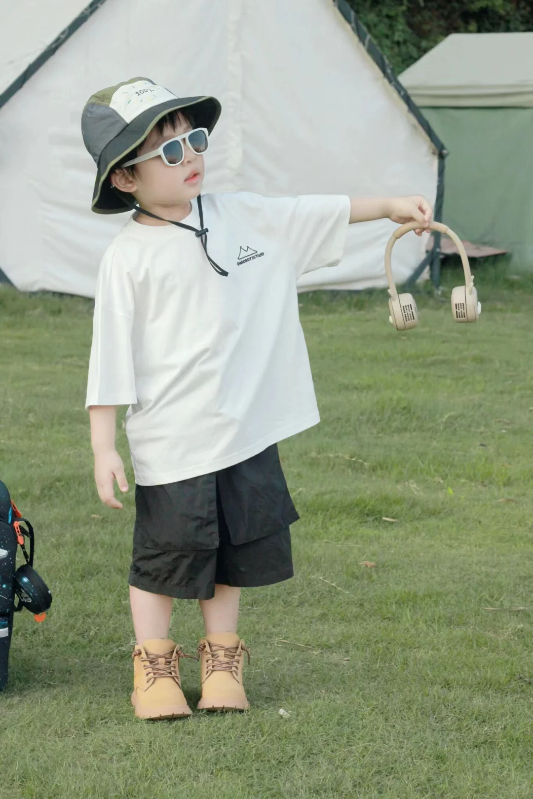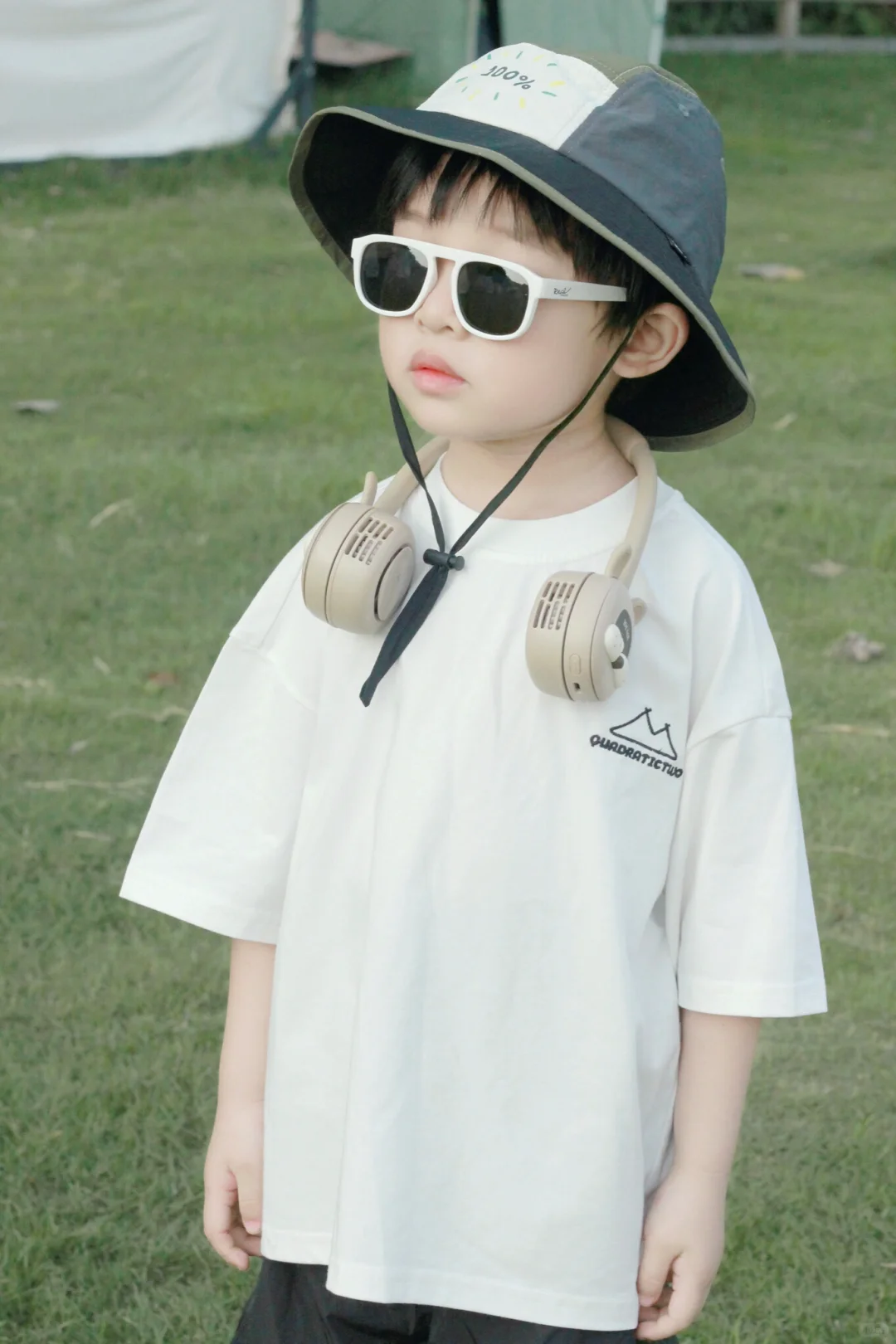 露营短袖套装挂脖风扇儿童夏季挂脖风扇夏季儿童穿搭风扇两次方户外运动亲子zoyzoii