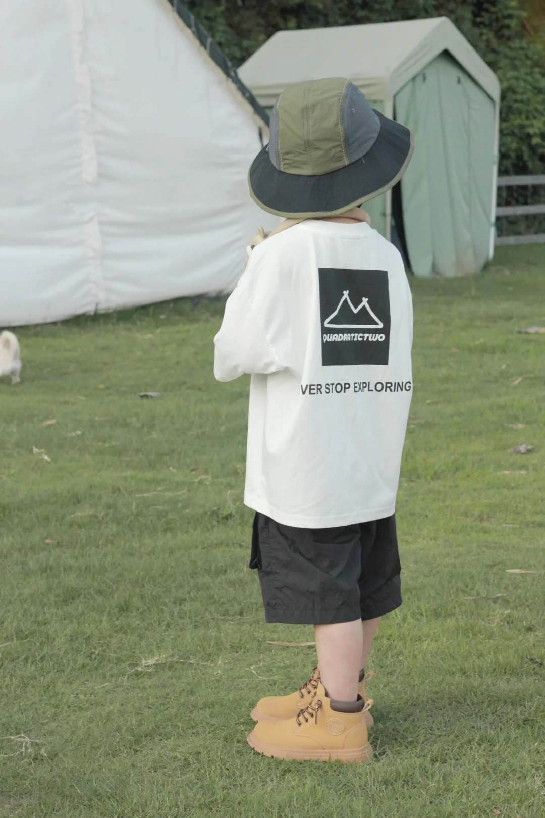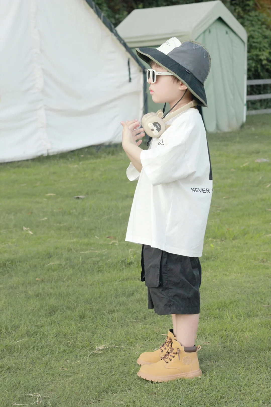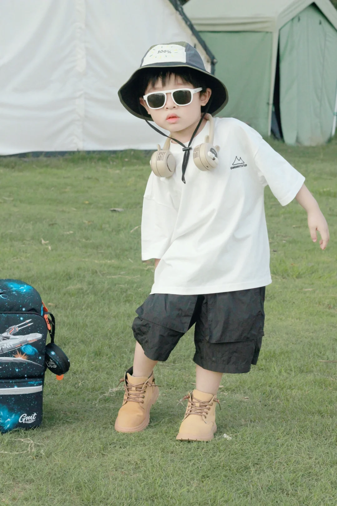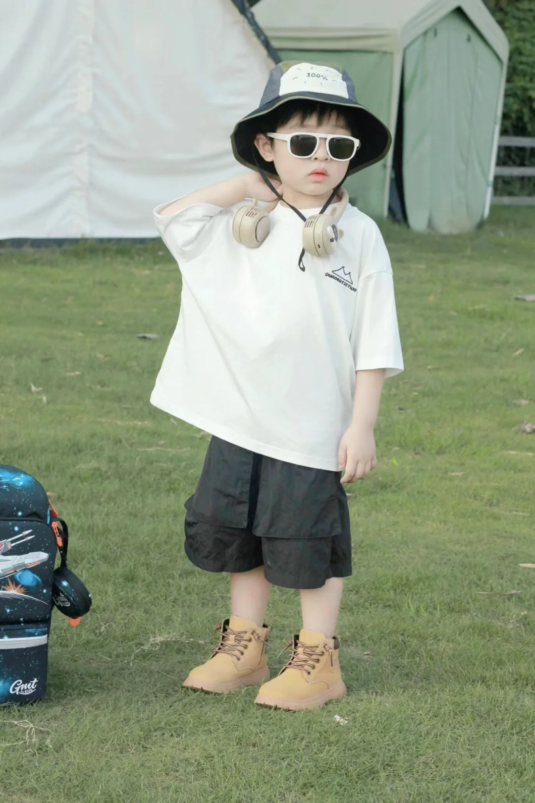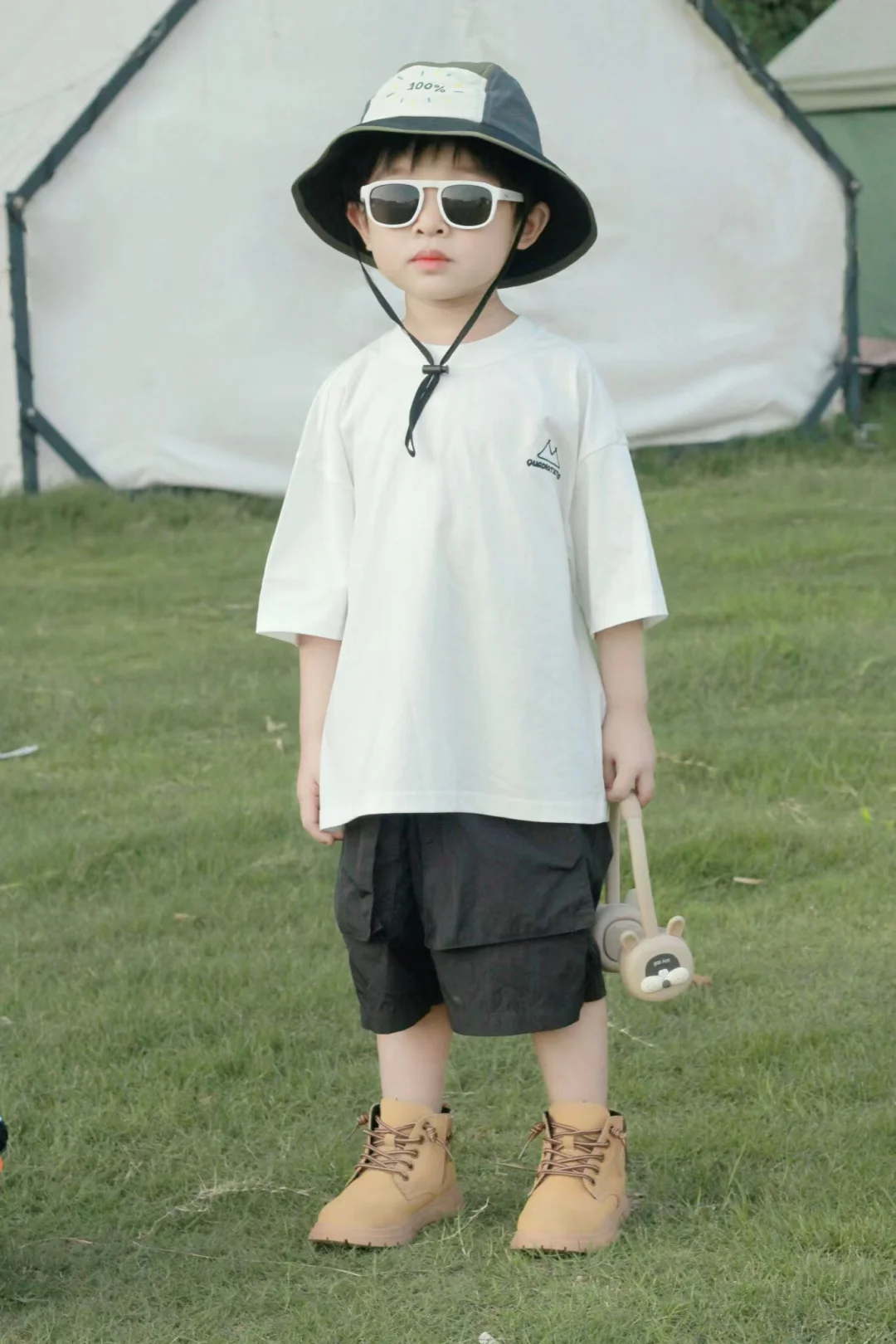 自然出来露营也要拍几张帅帅的照片,今天就给娃穿了露营风的短袖套装,别说上身效果真的帅!!白色的上衣真的也好百搭,裤子是工装类型的,透气性还挺好~