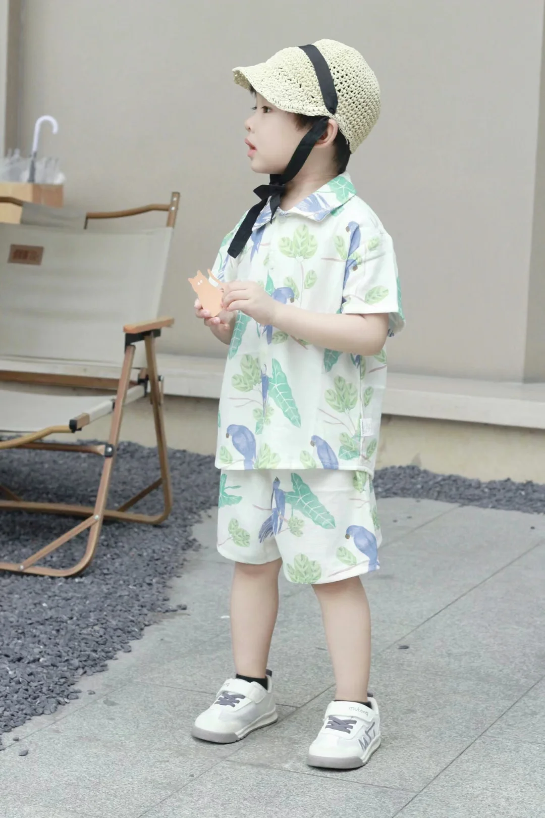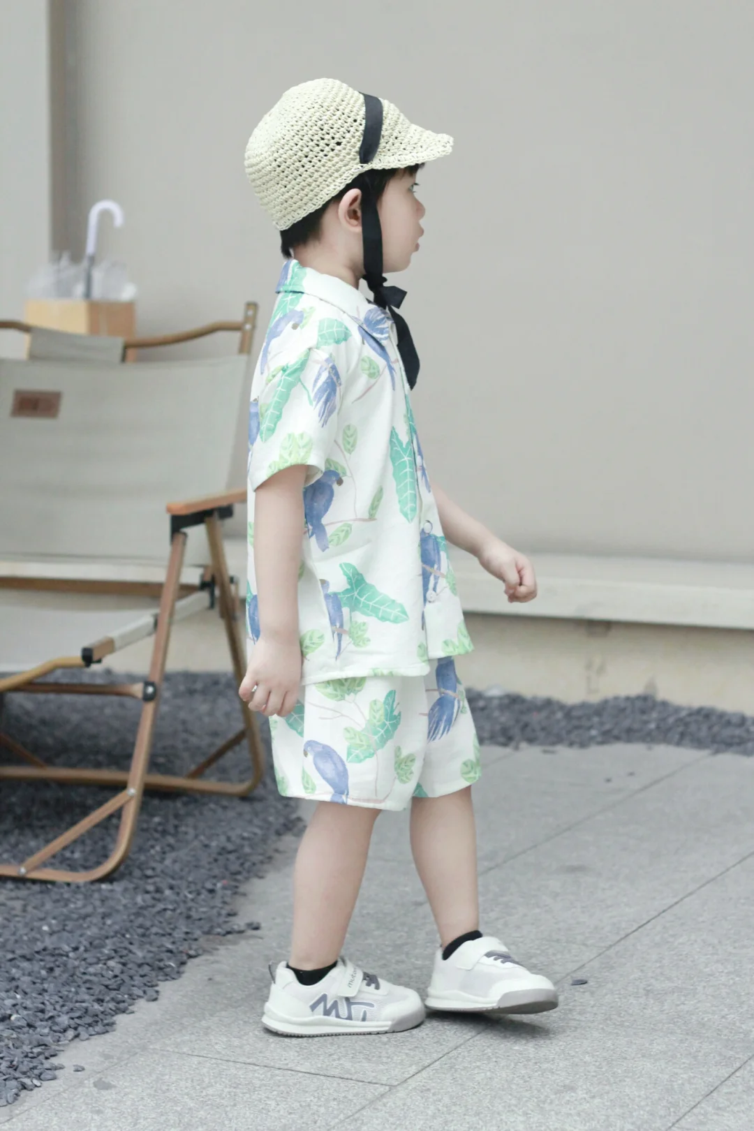 好爱儿子这套浅色系的穿搭,上身像是在度假的感觉,哈哈哈,