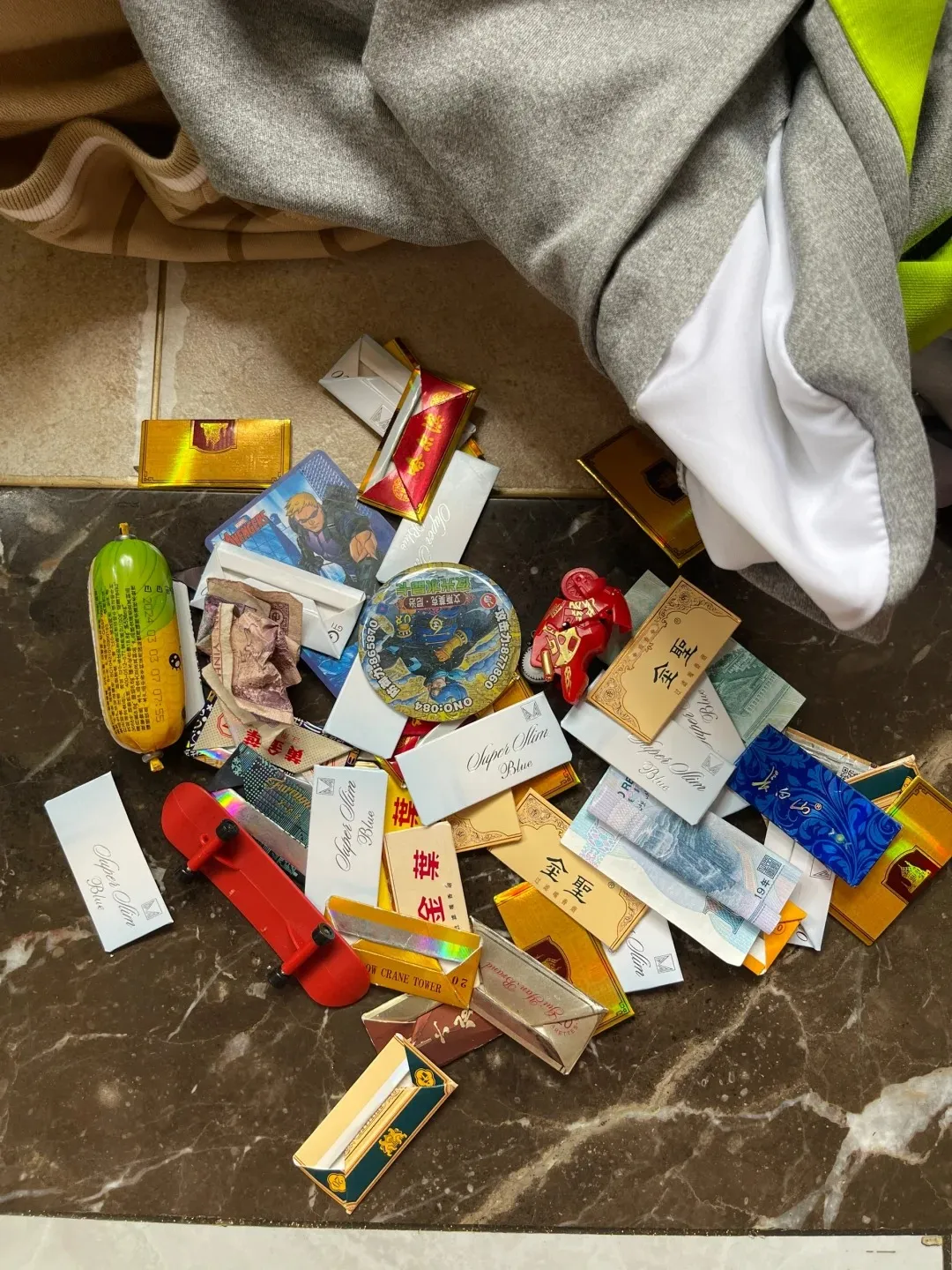 小屁孩玩烟盒,不是抽烟