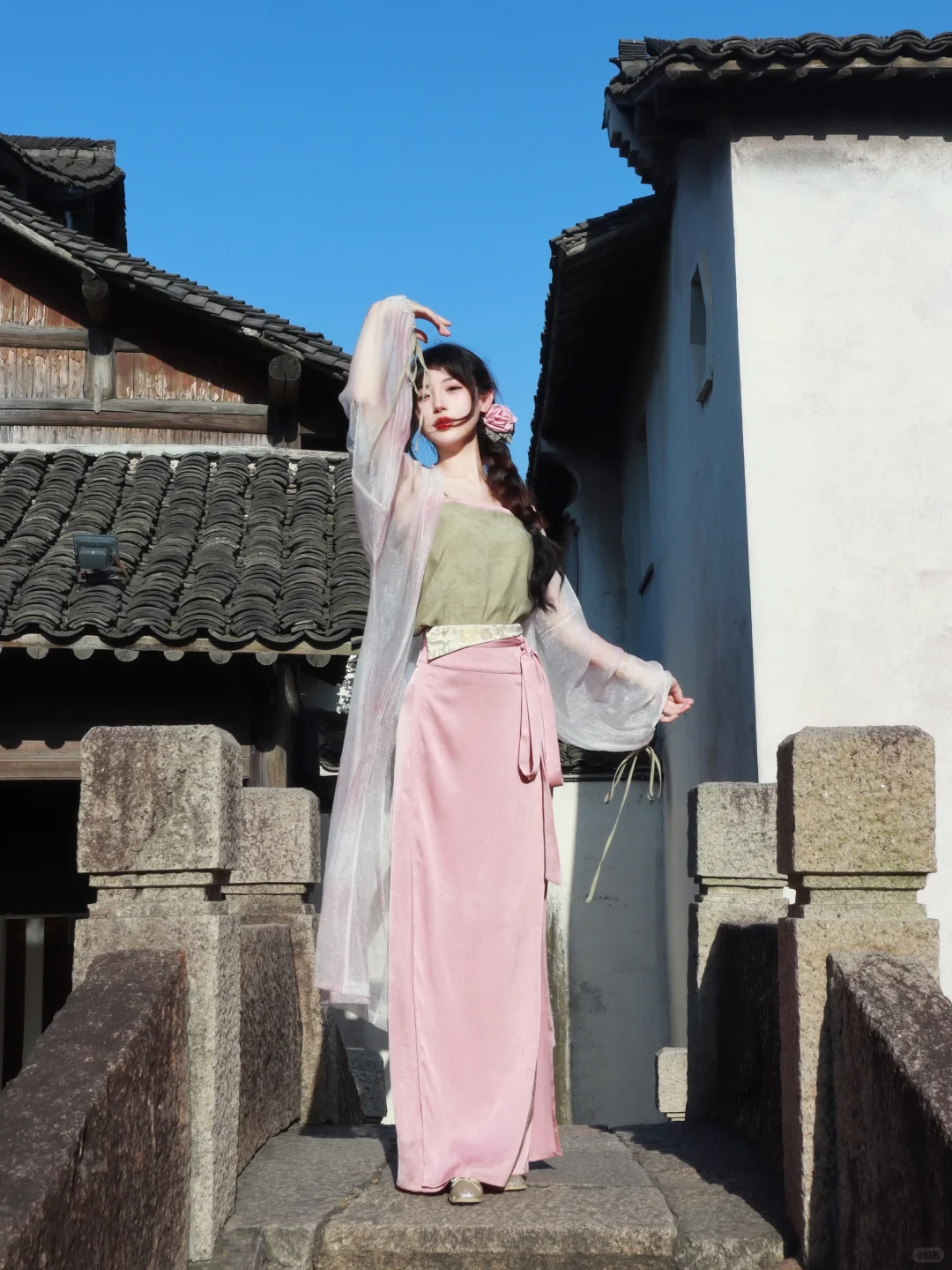 哇!汉服初体验太棒了,宋制汉服温柔又仙气,感觉自己穿越了~