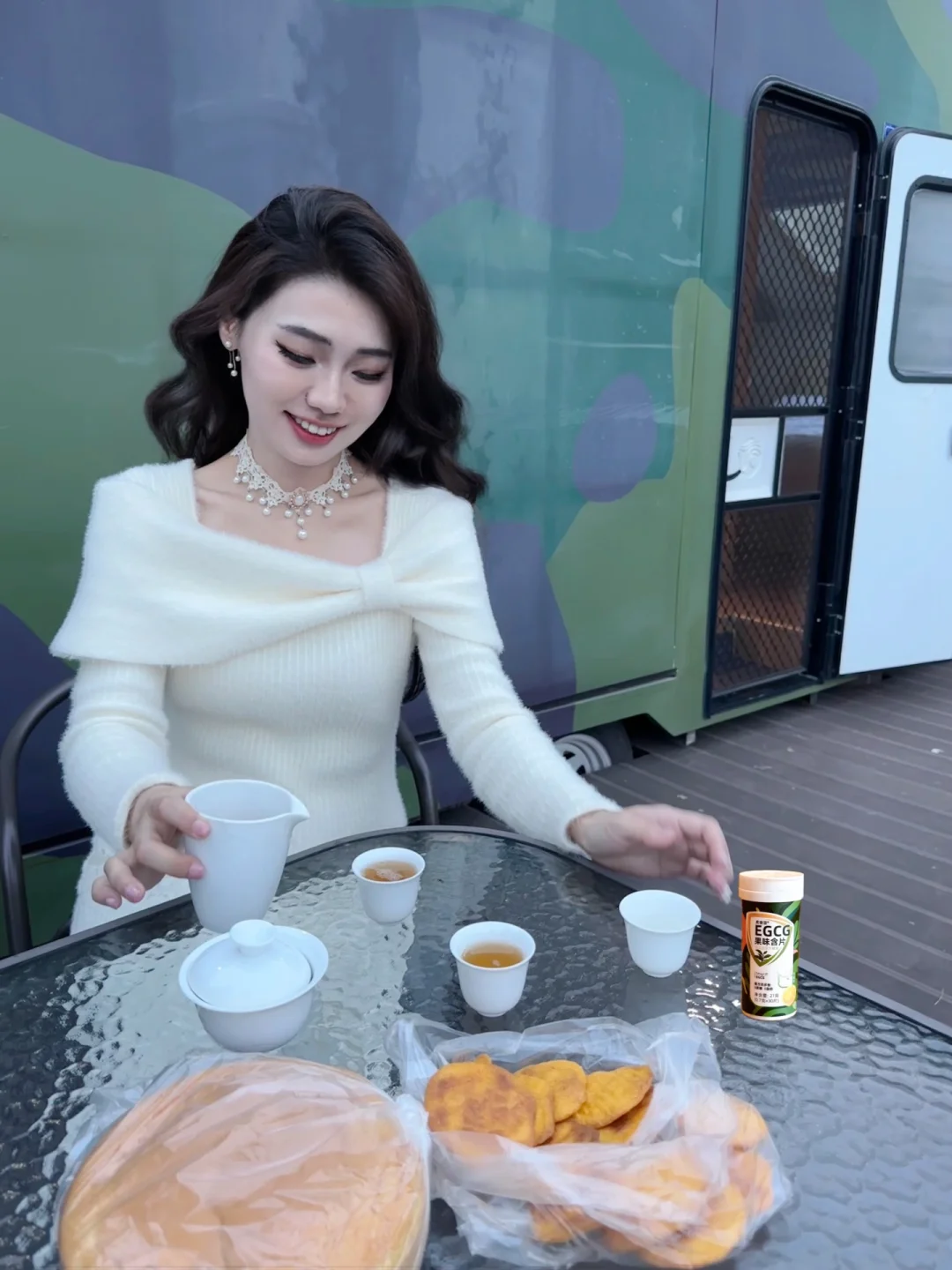 住在大大的房车里面还可以独立庭院泡茶!