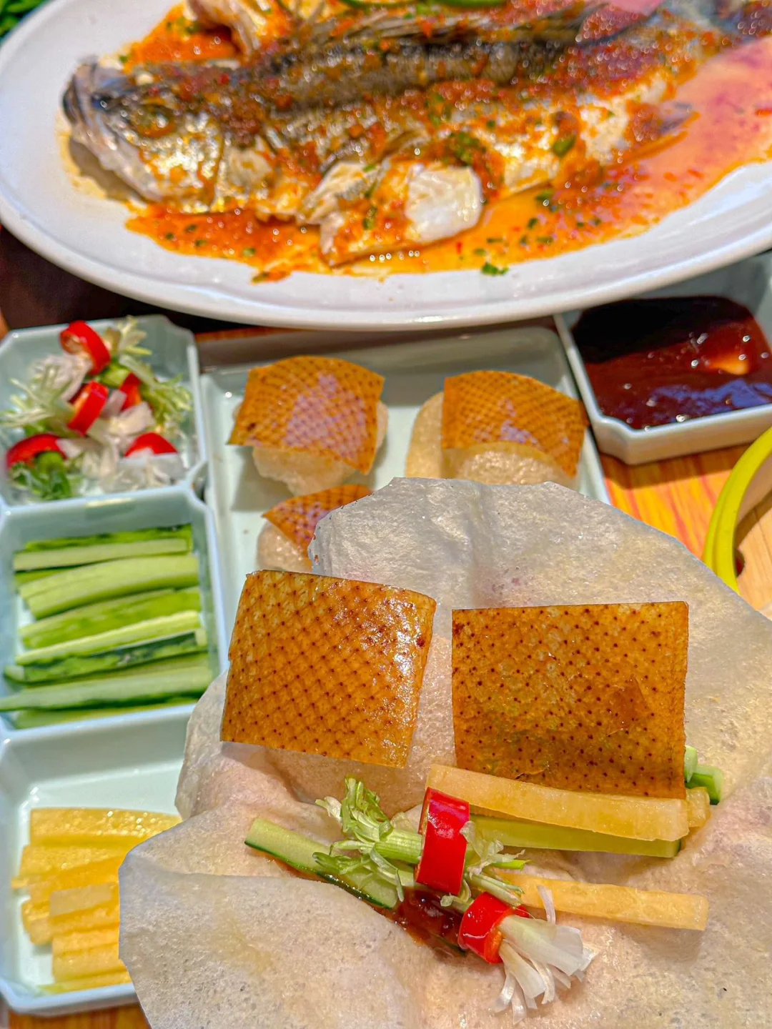 搭配黄瓜、哈密瓜、红椒葱和酱料